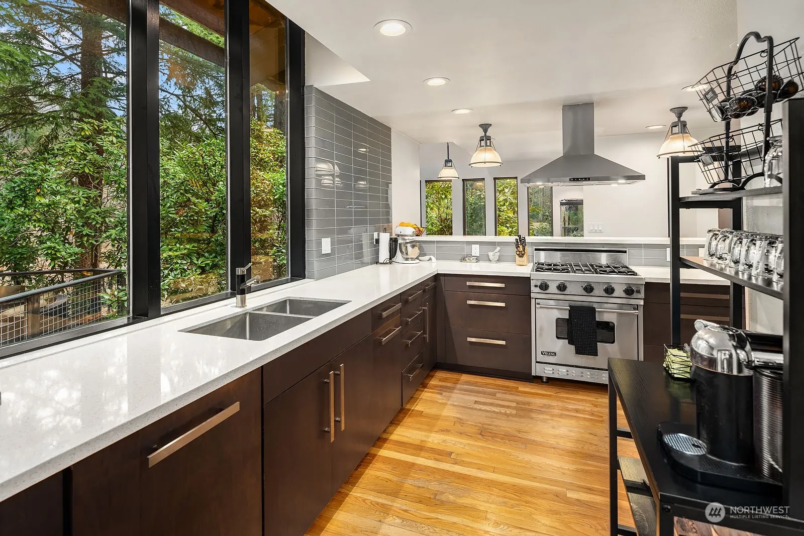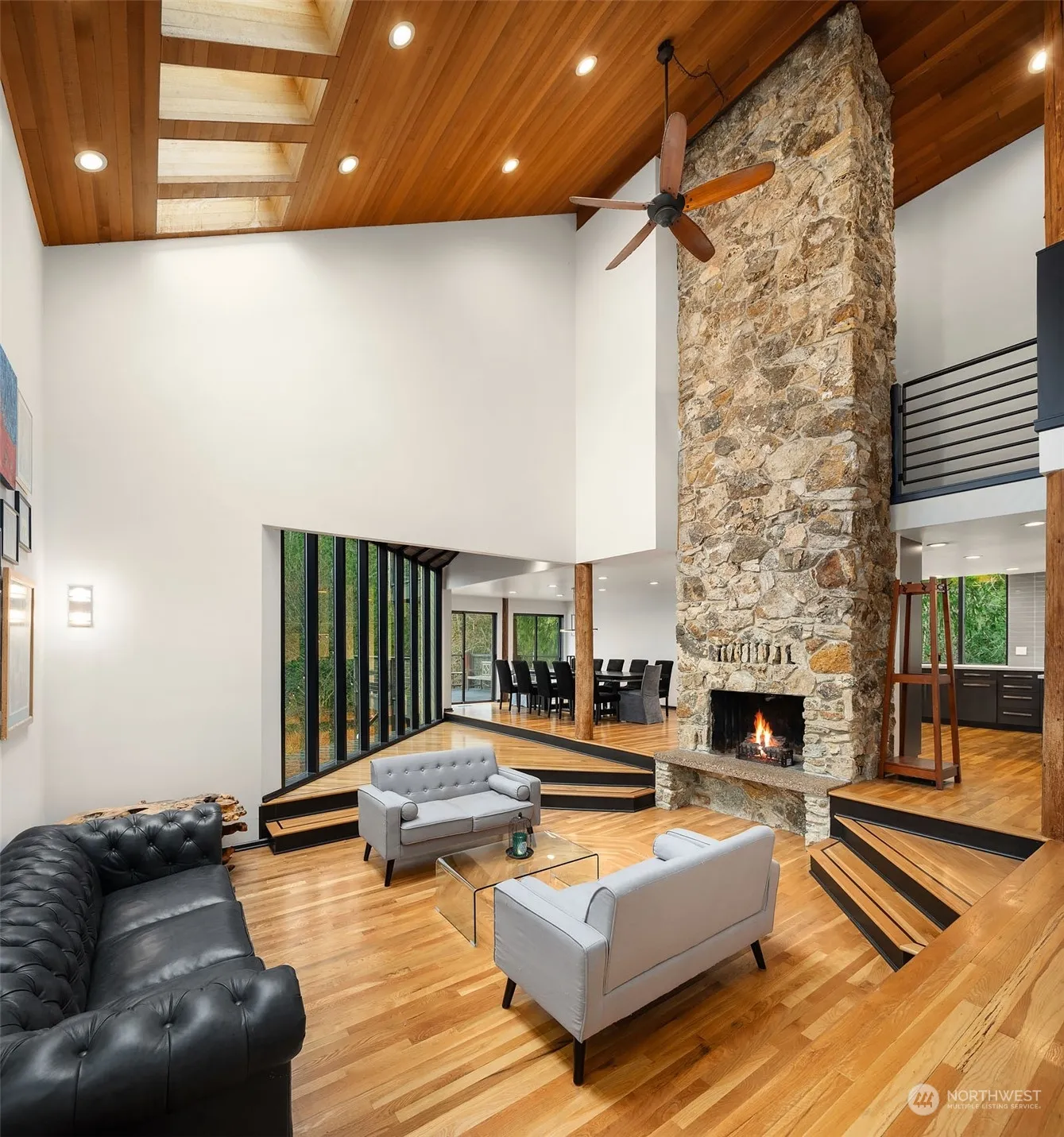 Enchanting, once-in-a-lifetime, luxury estate on 9.54 acres. Natural spring-fed ponds & a romantic bridge. Endless opportunities for outdoor entertaining include manicured lawns & gardens, huge paver patio, firepit, chess set, patio pergola, winding paths, & incredible views. The home is a multi-level NW contemporary masterpiece fully remodeled in 2017. Open great room features magnificent new windows and 3-story stone fireplace. Modern kitchen w/new cabinets, quartz counters, Viking & Sub-zero appliances. Huge open dining room easily seats 14 w/deck. Primary suite w/5-piece bath, private deck. Guest suite downstairs w/living area, bar, bathroom & patio access. The adjacent 5-acre parcel is also available LS #2278534.