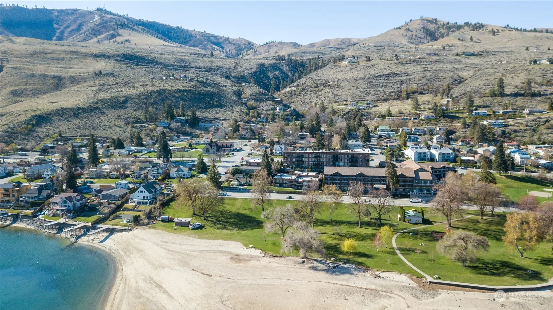 PRICED TO SELL! Epic ground floor unit #106 at Chelan Resort Suites is situated perfectly above the sunny shores of Lakeside Park offering ideal sandy beach public access, close proximity to wineries, Slide Waters, Boat Company, & Boat/Jet-Ski Rentals. Ground floor units are crowd favorites making it easy to come and go to the pool/hot-tub & handle personal belongings as you head to the lake. Unit is a turnkey 2bed/1.75bath, 884sqft w/ updated furnishings + generously sized patio to take in the mountain & peek-a-boo lake views. HOA amenities include pool/hot tub, large group BBQ area, gated entrance, security, assigned covered parking, water, sewer, garbage, cable, wifi, gas, & common area maintenance. Best valued STR investment in CSR.