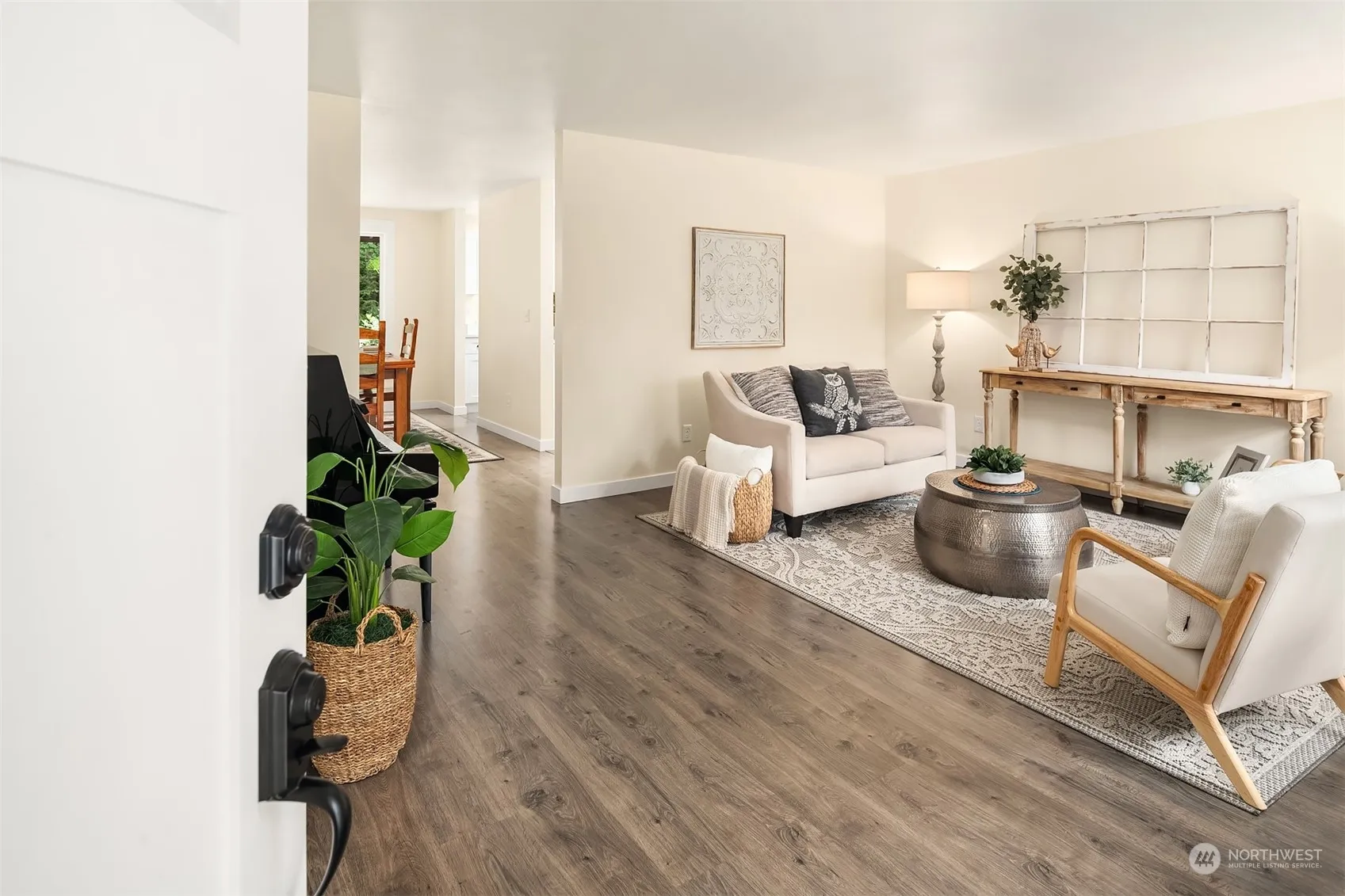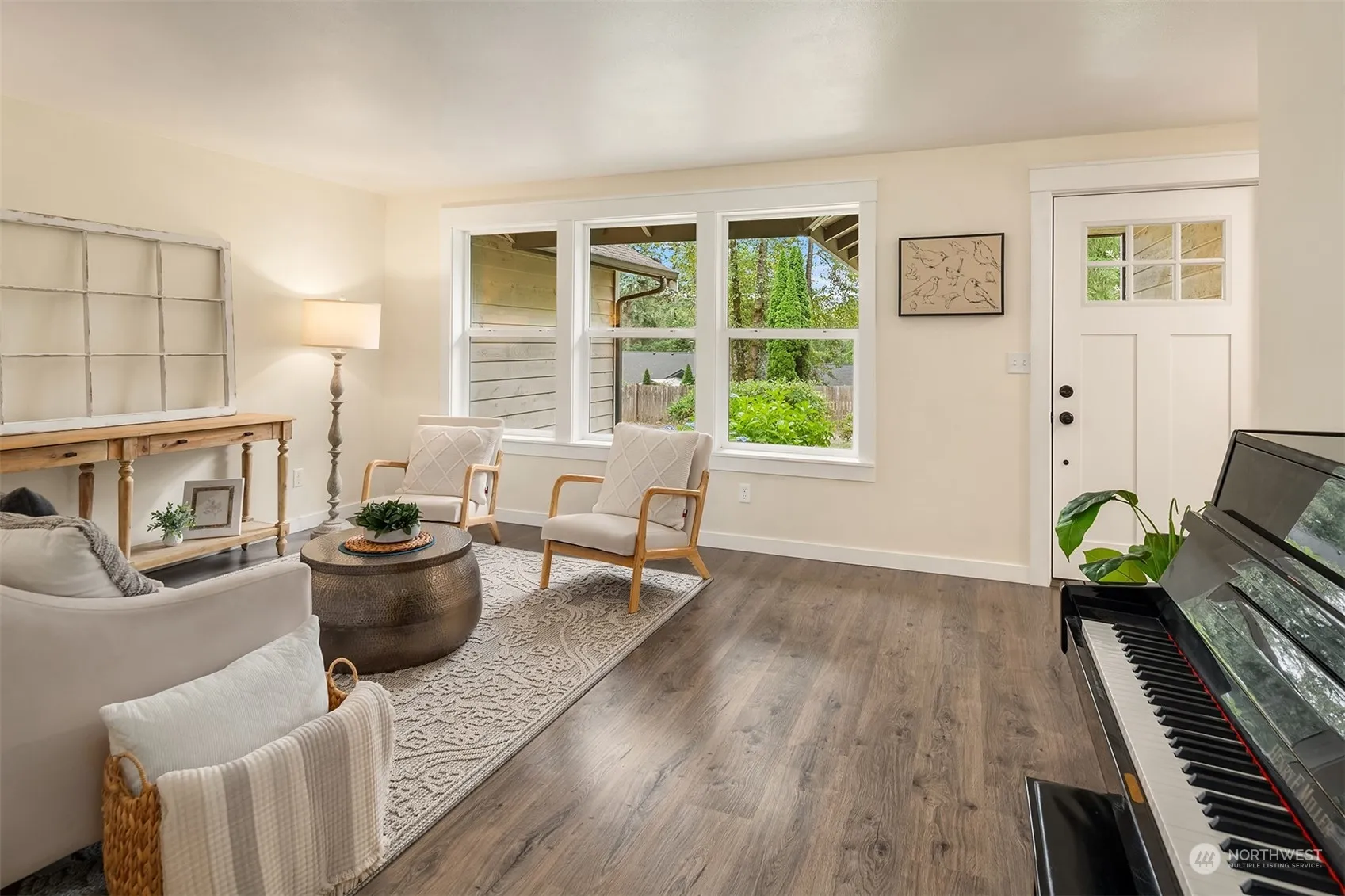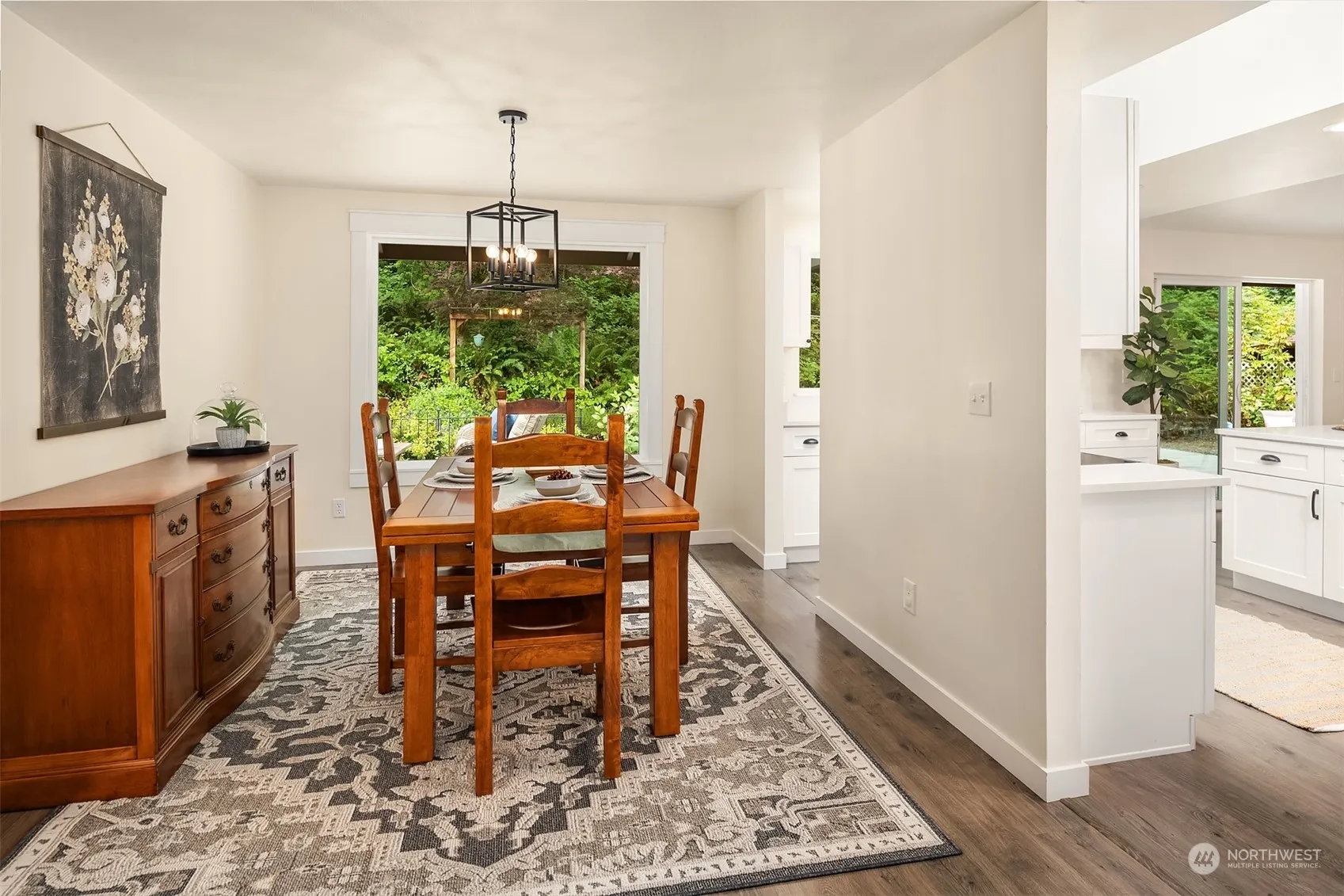 Nestled amidst the serene splendor of forest lined acreage this home offers a cozy private oasis. 2050sf functional layout w/ 5 bedrooms or 3 beds plus 2 bonus spaces. Enjoy the light & bright fully updated kitchen in the heart of the home including SS appliances, eat in island & farmhouse sink. Neutral paint & new carpet make it move in ready. With nearly 1 acre to call your own this home offers it all; large entertainer’s deck, fire pit area, fenced gardens, established berry & fruit trees, greenhouse, chicken coop, tree fort. As a bonus this property has a detached ADU perfect for guests or great rental opportunity. Lots of room for vehicles and hobbies w/ a 3 car garage and covered RV parking. Pre inspected. Your new home awaits!