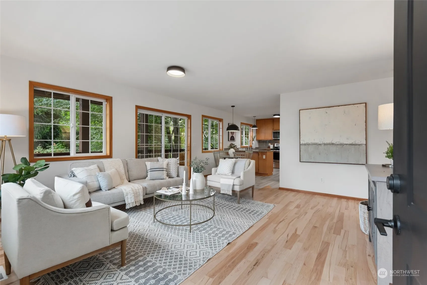 Beautiful water views of Lake Washington nestled in Newcastle centrally located near Bellevue and Seattle. Upon entry, you’ll have an open floor plan family room leading into the updated kitchen with granite counter tops, stainless steel appliances, and 2 beds on the main floor. On the second story, you’ll find a spacious owners suite. The upstairs deck includes a private enclosed 130 SQFT balcony with deck access. Newly landscaped with additional parking spaces for 4 vehicles. Newly finished upgrades incld: Ext and Int paint, deck stain, landscaping, sprinkler system, light fixtures, 3/4 inch maple hardwood floors, hardware, vents, fans and whole home networking. Don’t miss a great home with a wonderful sunset lake view.