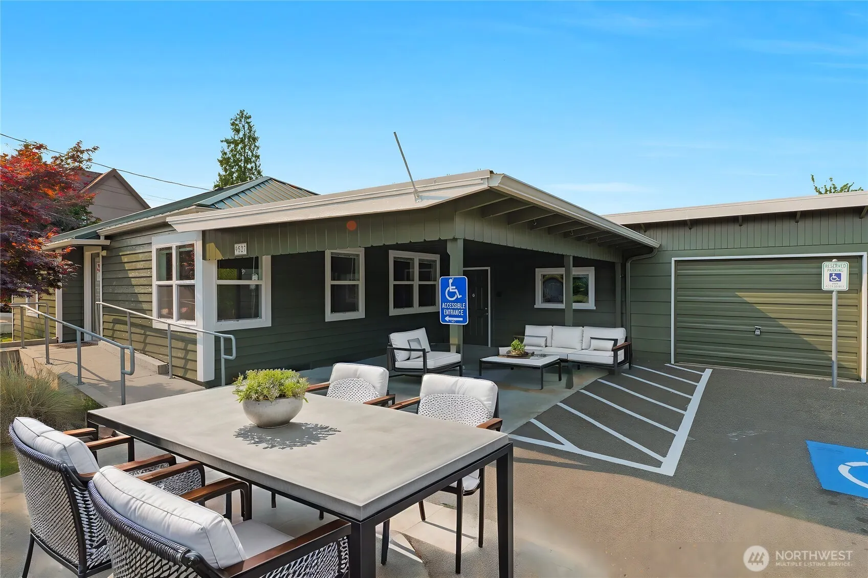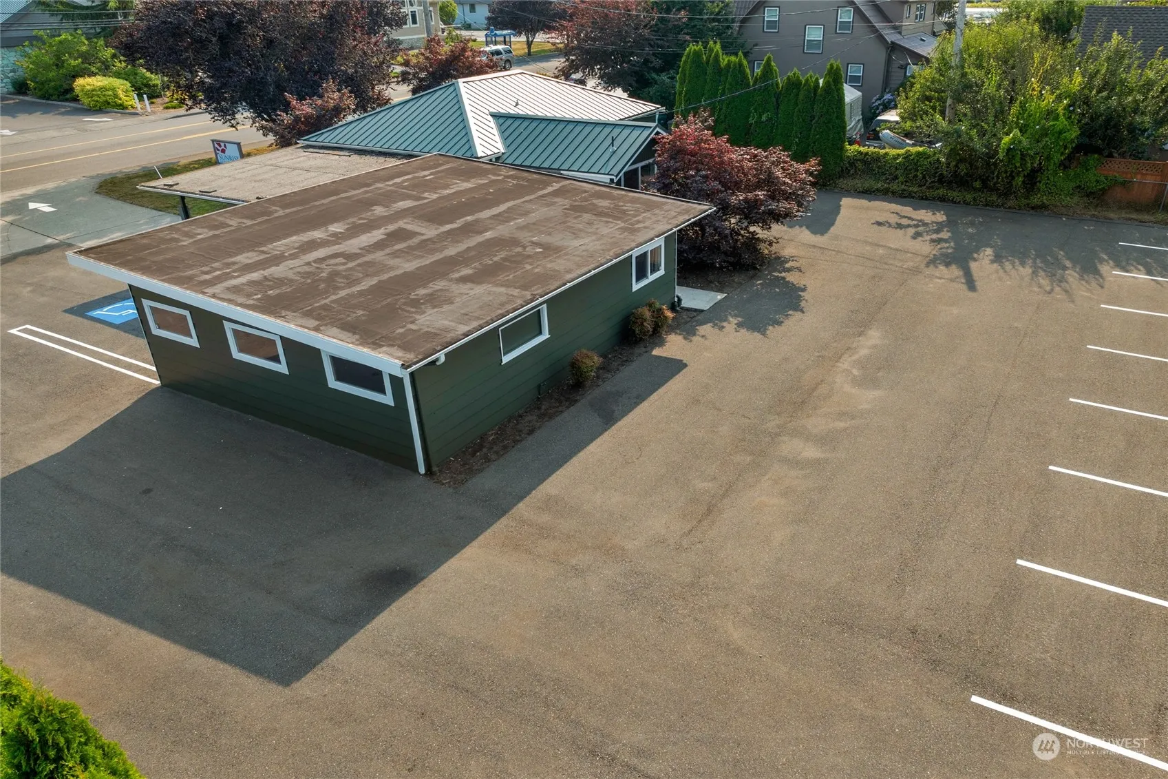 Amazing location in downtown Stanwood! Situated on a large level lot with considerable parking for clients, equipment or personnel, this property is amazingly diverse and be used in many ways. The structure has fresh exterior paint, metal roof, carport parking and an attached 300+ sq. ft garage! 100 feet of street frontage, fully handicap accessible and privacy in the surrounding back and side areas. The interior has been remodeled and updated to include a lobby, four offices, a conference room, kitchen, bathroom & flex area with washer/dryer hookup. Newer interior paint, carpet, internet cables and electrical have been added. Fully turnkey and zoned MB2 for a myriad of investment opportunities!
