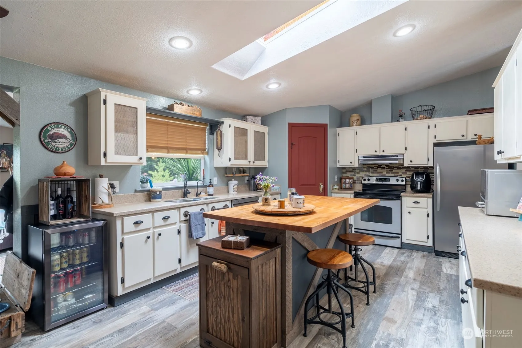 This beautifully designed 3-bedroom, 2-bath home is brimming with desirable features. From the elegant floors to the meticulously remodeled primary bathroom, every detail has been thoughtfully considered. The cozy wood-burning stove is perfect for gathering loved ones. Each bedroom offers a walk-in closet & generous space. The kitchen is a chef’s delight, featuring a butcher block island, a large pantry, & ample cabinet space. Step outside to a beautifully landscaped yard complete with a partial fence, a charming deck, a firepit, an entertainment-ready gazebo, & even a year-round creek. The property also boasts a greenhouse, a shed with power & water, a large shop with a 30 Amp trailer hookup, & covered parking. Buyer to Verify all!