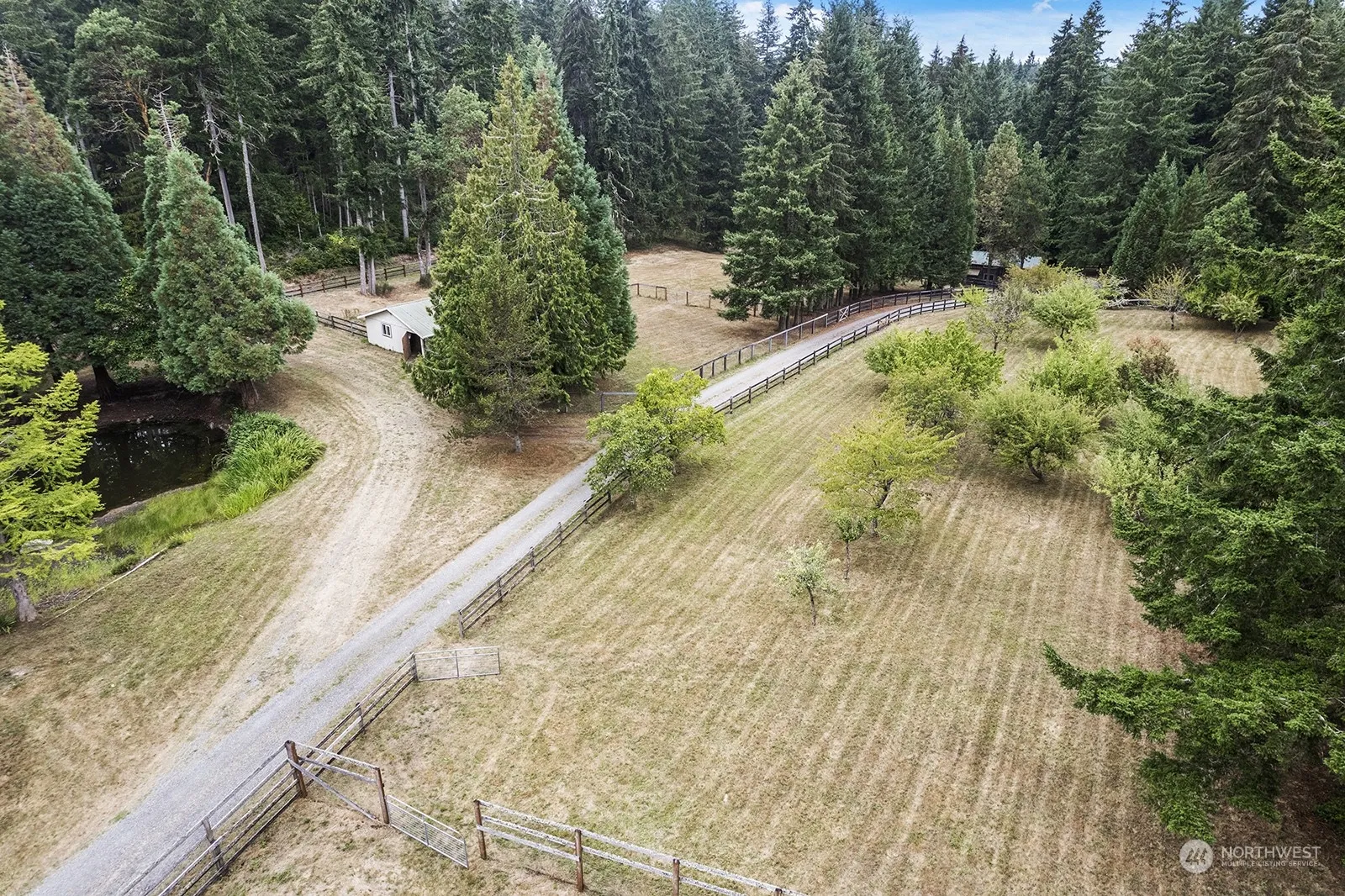 Hobby farmers and outdoor enthusiasts will love this private 9.22 ac sprawling slice of island paradise. An ideal location with adventures right outside your front door, just 5 minutes from town and located next to Fisher Pond & nearby Center Forest trails. Stroll to one of the two Sequoia lined serene ponds with a bridge leading to an overwater deck perfect for relaxation and water activities. Live in a cozy cabin with a brick fireplace & workshop space while you build your dream, or share this Pendleton getaway with vacationers. Start-up is easy with several outbuildings for equipment, animals & a large multi-purpose pole barn. Fenced & cross-fenced pastures with turn-outs, stalls & irrigation plus a mature orchard complete the package!