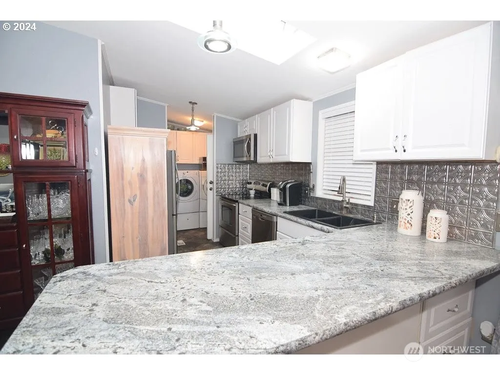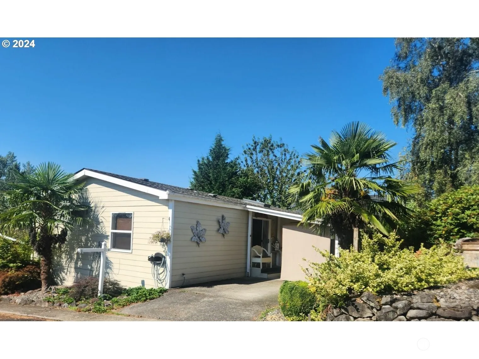 YOU OWN YOUR OWN LAND! Welcome to easy living in this move-in-ready home in a community where homeowners own their own land. 3 bedroom 2 bathrooms and a fenced backyard. The open and inviting living space with a layout designed for functionality. Stainless steel appliances. Refrigerator, Washer and Dryer included. This property features a shed/shop that caters to a variety of needs. Majestic palm trees. Imagine sitting in the morning sun, sipping coffee on your patio. Vinyl fencing. No space rent in this community. $100 dues include water, private park, and clubhouse. Community RV parking $10 a month. Schedule your showing today.