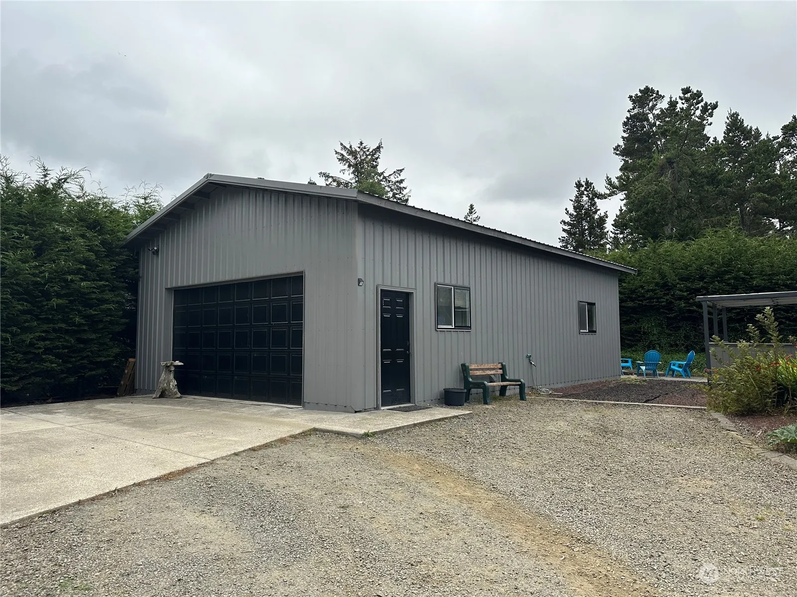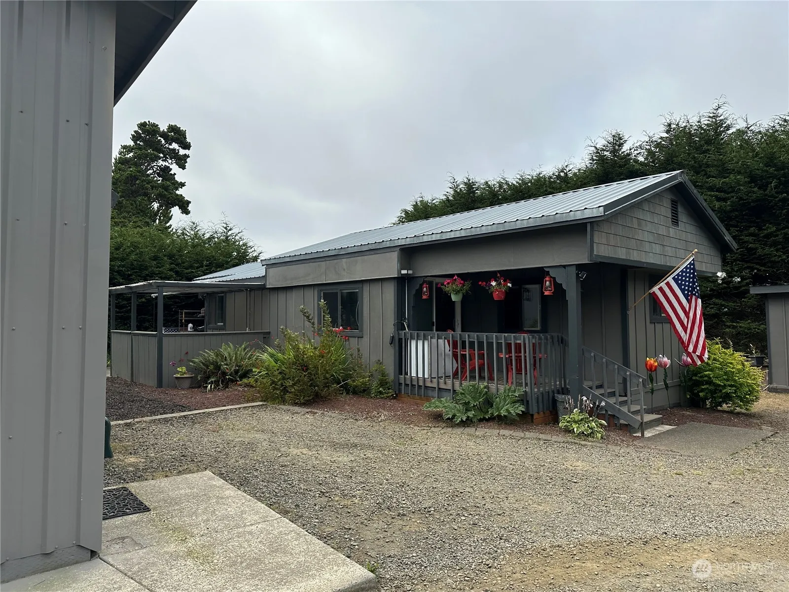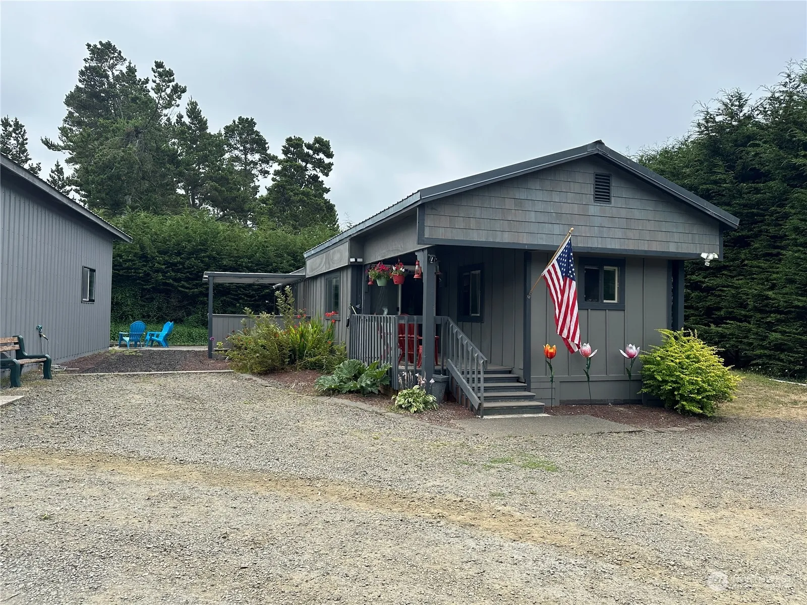 Discover coastal living with this well maintained 1966 2 bed 1.75 bath manufactured home just minutes from the beach. So close you can hear the ocean waves. Home has many modern upgrades including a permanent roof cover with corrugated metal. Interior floors are laminate wood flooring and tile throughout. Grounds are well maintained with low maintenance landscaping. A spacious 2 car shop/garage with loft that includes a 480sq ft one bed 3/4 bath studio apartment that has an upgraded kitchen with granite counter tops and stainless steel range. Interior walls are finished with cedar and a pellet stove for that cozy feel. Enjoy evenings around the fire pit surrounded by cedar trees. Also has a security system and gated entry for peace of mind.