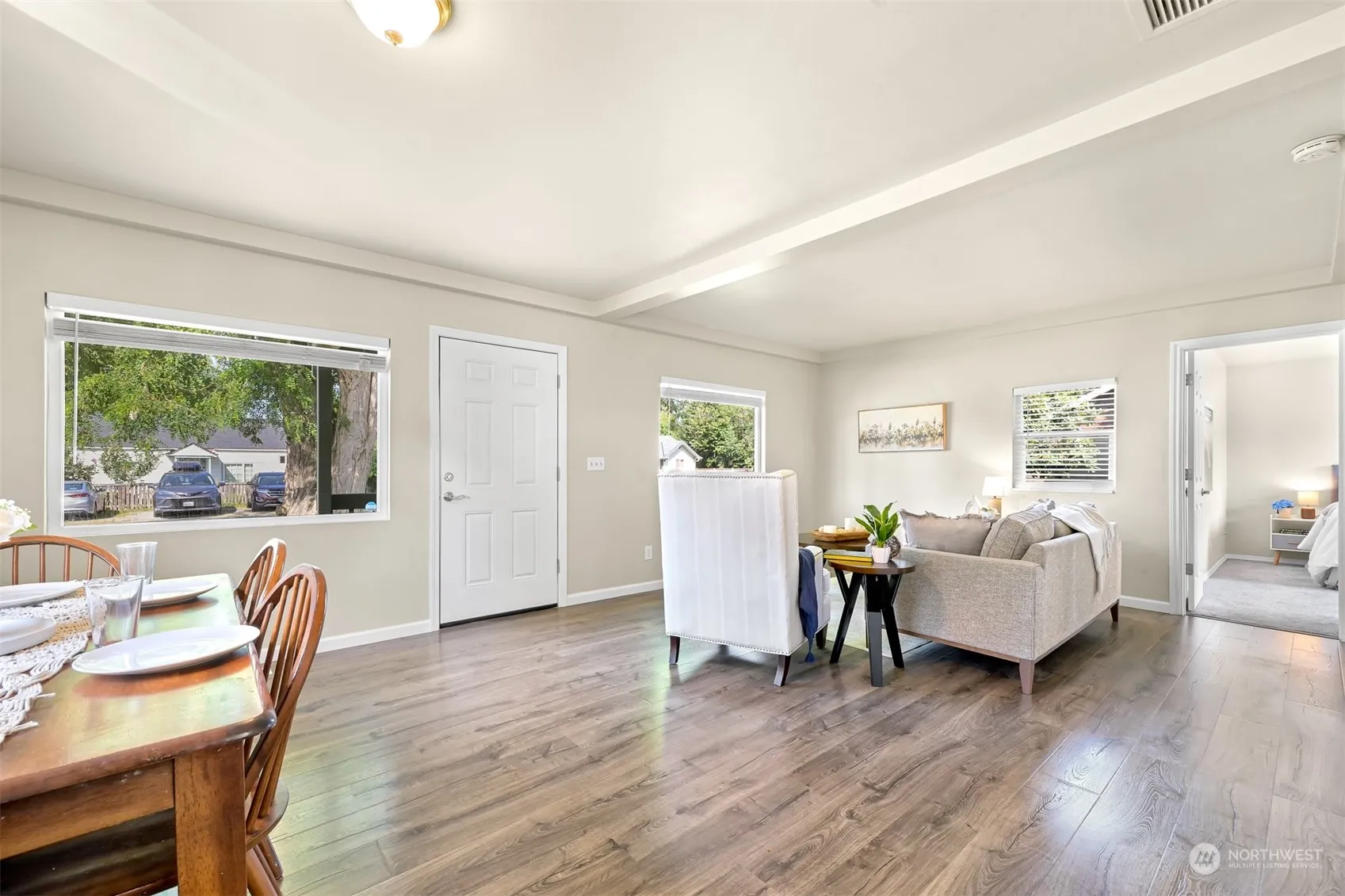 This beautifully updated and meticulously maintained home is situated on a spacious lot in an ideal location, complete with a large detached garage and convenient alley access. Abundant natural light fills the home, complementing the tall ceilings, expansive living room, and generously sized bedrooms. The living room seamlessly connects to a spacious kitchen, which leads to a large storage room with a door to the outside to a large fully fenced backyard. Recent upgrades include a new furnace, water heater, carpet, LVP flooring, a modern kitchen with new appliances, and a newly built garage etc. This is a picture perfect home that offers a wonderful setting and ample amount of parking. All the big items have been taken care of for you!