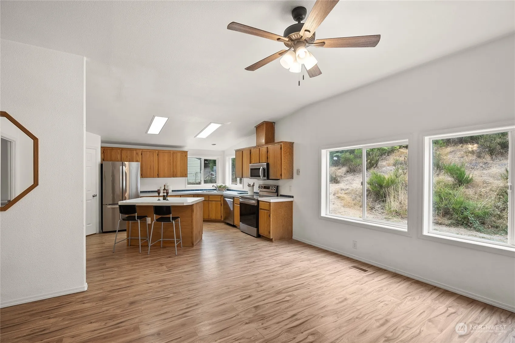 Welcome to your perfect blend of comfort and functionality! This 4-bedroom, 2.5-bath home offers a spacious primary suite with a dedicated office space. Unwind in the primary bath’s soaker tub after a long day. Large kitchen perfect for entertaining or cooking holiday meals! The vaulted ceilings give the home an extra spacious feeling. In the winter stay warm by the wood stove and in the summer stay refreshed with the AC. Enjoy the outdoors on your large deck overlooking a fenced backyard, complete with a substantial chicken coop, ideal for hobby farming. The property also features an RV pad with power, catering to your storage or travel needs. Plus, no HOA restrictions mean more freedom for you. Potential VA Assumable loan at 3.125%