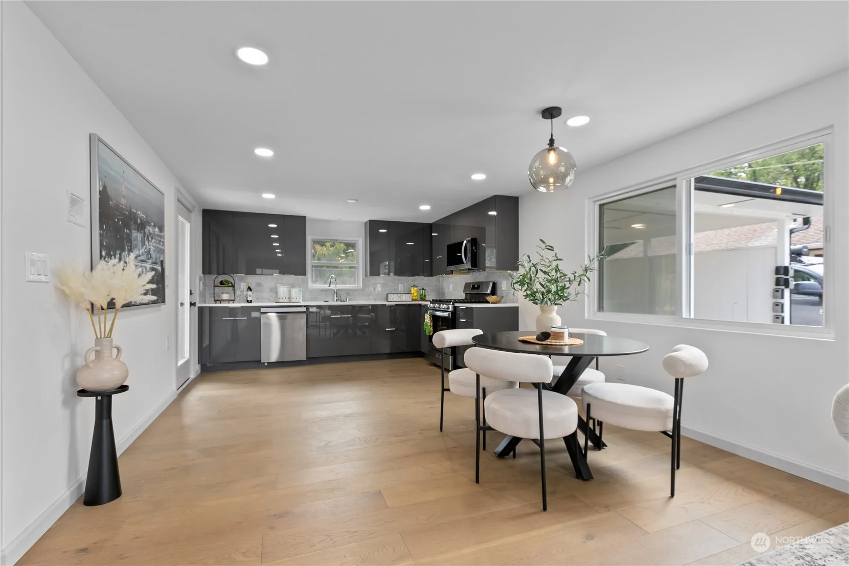 Welcome to this fully remodeled rambler home located in the North Hill community. This delightful home offers 3 bedrooms and 1.75 bathrooms in an ideal location. Step inside to discover a tastefully remodeled kitchen with quartz countertops, glossy cabinets, brand-new stainless steel appliances, newer windows, and new engineered hardwood flooring throughout. Each room is equipped with a new mini split A/C system. The exterior features a new roof, new siding, and a thoughtfully designed low-maintenance yard. The covered patio provides an outdoor space for relaxation at any time. Enjoy easy access to the Angel Lake Light Rail station and freeways for convenient commuting—just 10 minutes to the airport! This is a home you don’t want to miss.