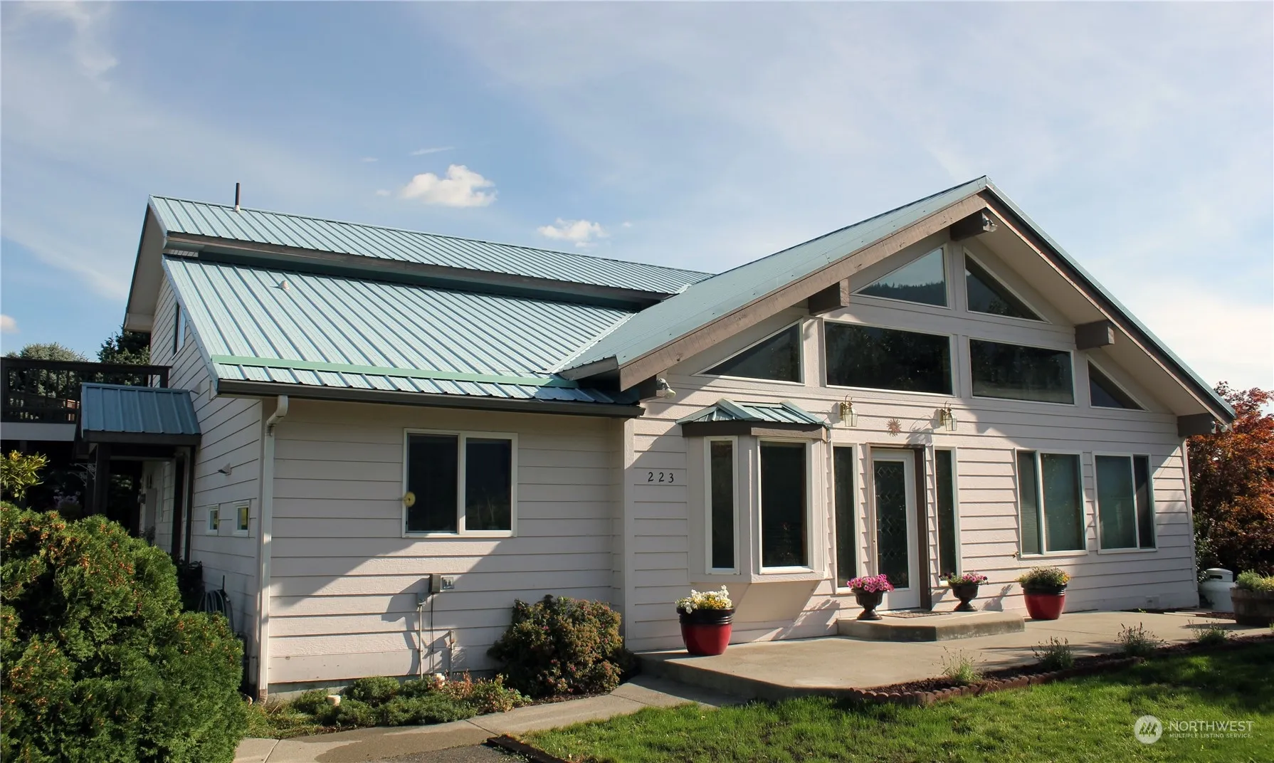 Serene 7.2 acres w/ mountain/lake views bordering Dry Lake. 5b/3ba, circular paved driveway w/3 bay gararge/shop. There is a 2nd home (ADU mobile home) that would be great for potential rental income. Home has great room w/cathedral floor-ceiling windows, Kitch w/custom oak cab & granite. Featuring 2 primary suites w/access to covered patio/open deck, adding additional 1250 sq ft of entertainment space. Additional 3 bdrms, utility, office, storage & 2nd level fam room. Home updates: newer appliances, carpet, paint & luxury vinyl floors. Property includes 4 acres of producing apples which is leased to another person who maintains it. Seller is willing to pay for removal of orchard if Buyer desires. Mature landscaping w/natural lake habitat.