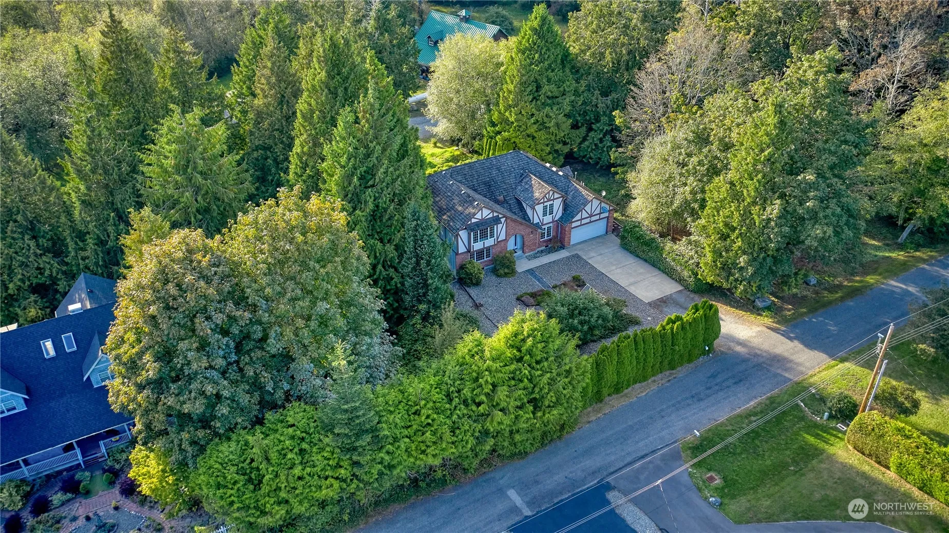 Welcome to this spacious home nestled amongst nature featuring 3 beds, plus 2 offices and 3 baths, located at the end of a quiet cul-de-sac in the heart of beautiful Point Roberts. The sale includes a second lot that offers complete privacy to the home. The main floor features large windows overlooking beautiful evergreen trees and the private yard. Open-concept kitchen, and a formal dining room that opens onto a large deck w/ western exposure. Cozy living room w/ a fireplace, perfect for gatherings or quiet evenings. The generous primary suite is complete w/ an en-suite bathroom, sitting room, and a walk-in closet. The attached two-car garage offers convenience and additional storage options.