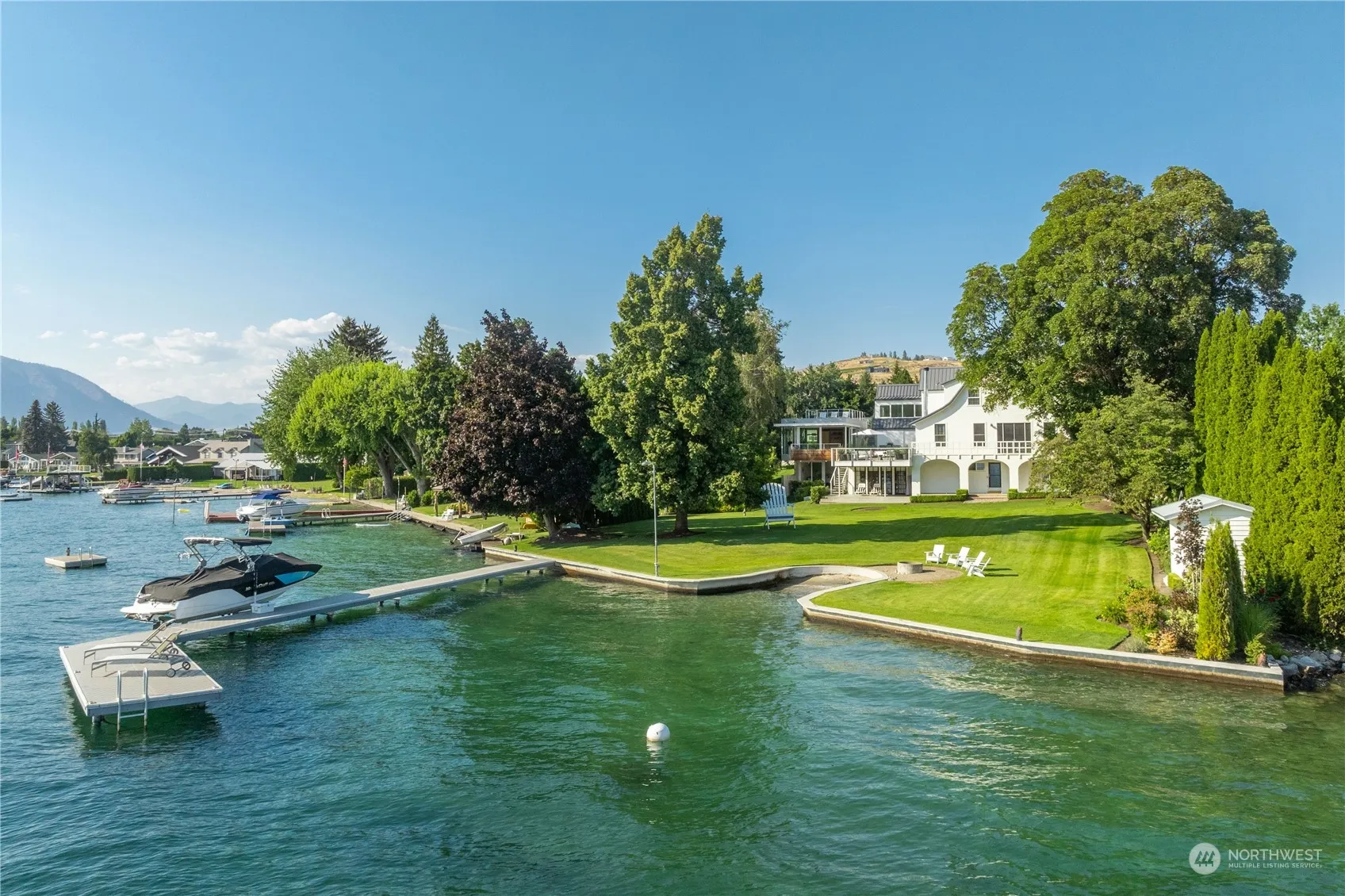 Nestled on the serene north shore of Lake Chelan, this iconic 5,016 sq. ft. residence is a blend of vintage allure and modern sophistication. Originally built in 1944 and then reimagined by E. Cobb Architects, it offers breathtaking views of the lake and Chelan Mountains. Final construction was completed in 2022. Featuring 6 bedrooms, including 4 primaries with luxurious ensuites. The manicured grounds boast 136′ of waterfront, a sandy beach, private dock, boat lift, fire pit, and an expansive entertainment deck that evokes relaxed elegance, offering an ideal backdrop for both intimate gatherings and grand-scale entertaining. This private oasis embodies lakefront elegance with modern luxury—a rare offering of Lake Chelan’s storied heritage.