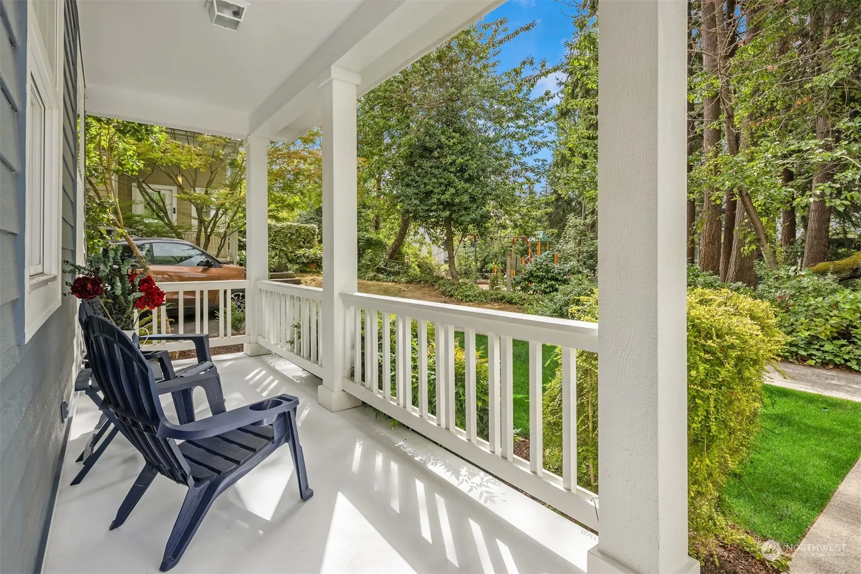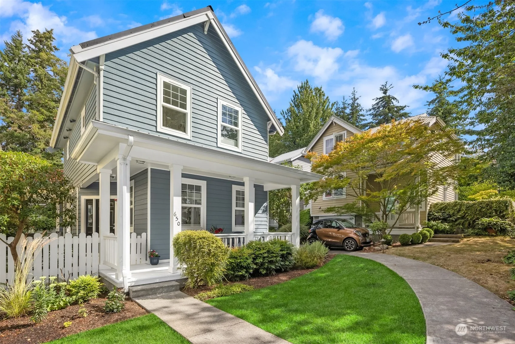 Welcome home to this sunny Madison cottage complete with picket fence and wrap around private porch! This idyllic 2-bedroom plus office, standalone condo is set next to a quiet park and backs into green space where you can take in birds, nature and tend to your private garden. The home interior boasts numerous upgrades including new flooring, fresh paint and washer, dryer and heat pump and an updated kitchen. The vaulted ceilings and oversized windows bring ample light into the home and a feeling of spaciousness. Perfectly situated in the heart of Winslow with easy walkability to shops, bakeries, theaters and the ferry, the property also features a 1 car garage and an additional off street parking space; everything you need and more.