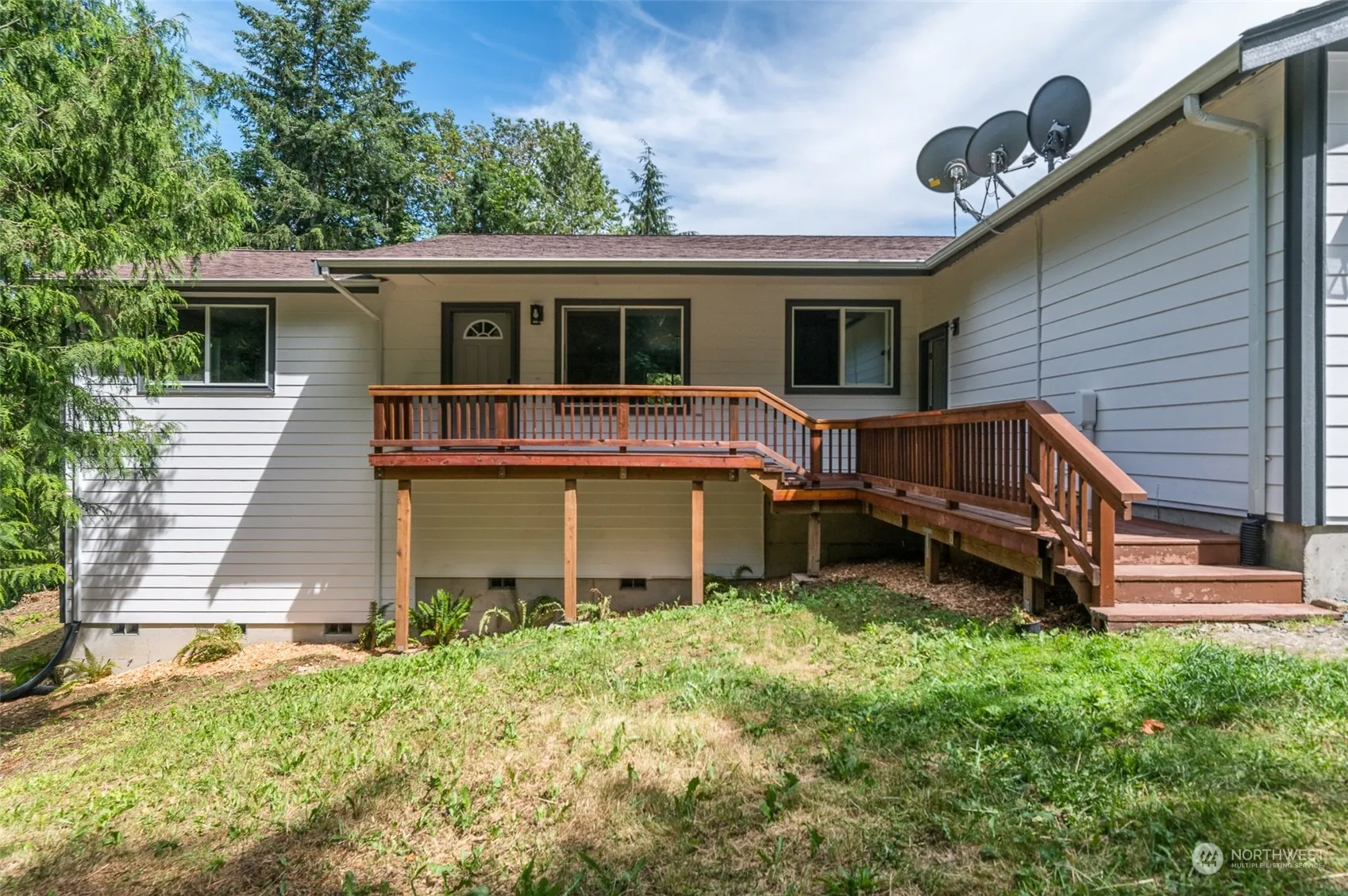 An amazing location and a huge price reduction combine to make this 3 bedroom 2 bath county home on 14 acres something you don’t want to miss. Recently refurbished, this home shines! Big mountain and valleys views with privacy at the very end of your long, new $80,000 driveway means privacy to enjoy your custom home. Two decks watch the views, more views from your chef’s style kitchen and there’s even a view from the master bath and family room. Vaulted ceilings provide a roomy feel, and one level living is very convenient. Oversized 3 car garage…and a huge crawlspace for future uses. Lots of timber on site and a big shop too. Seller is motivated!