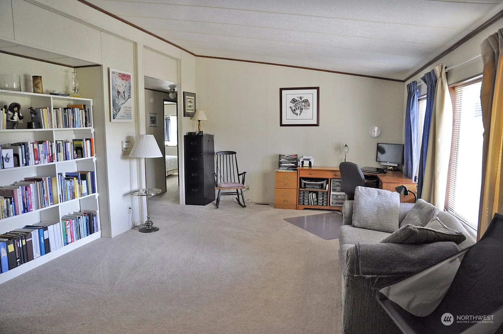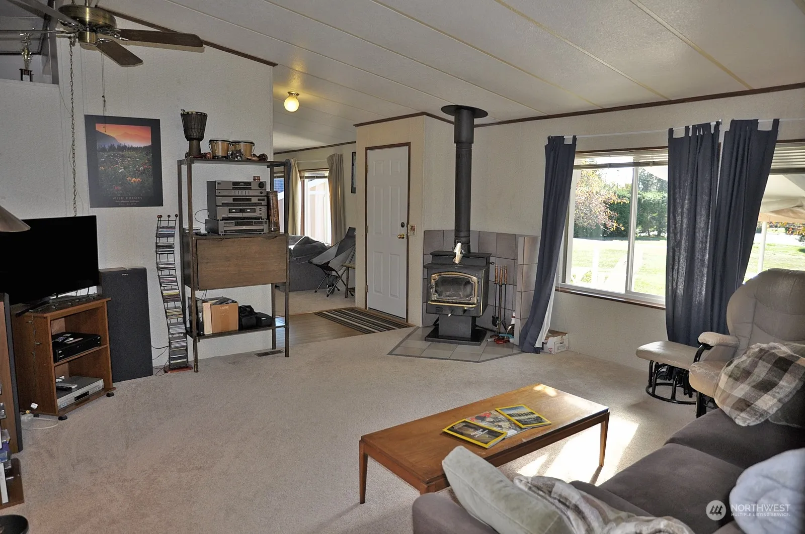 Wonderful location in The Oaks, a nicely maintained manufactured housing community in a pastoral setting. South-facing home with 1848 sf, 3 bedrooms, 2 full baths, new roof in 2019, new carpet, new dishwasher, living room, family room with a free-standing wood stove, en-suite primary bedroom, a utility sink in the laundry room, 2 decks, carport, shed with work benches, garden area, and a greenbelt area on the south side.