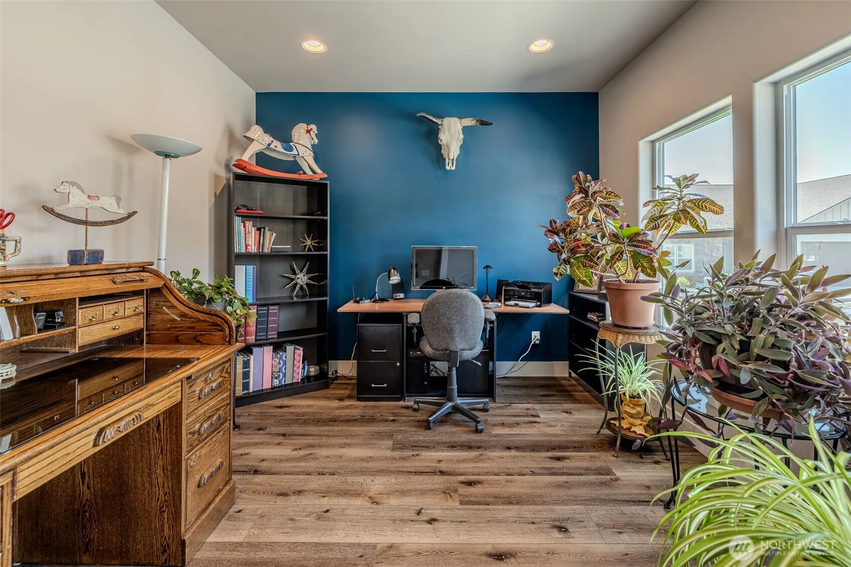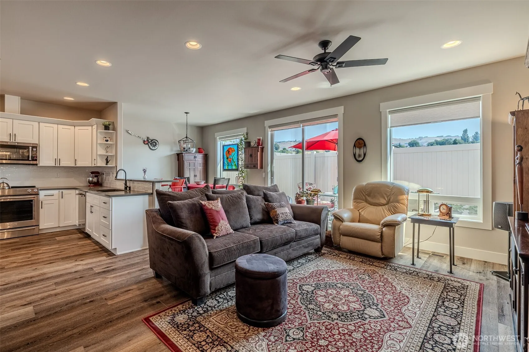 Low-maintenance living meets modern comfort in this nearly new 1,902 SF patio-style home. This 2 bed, 2.25 bath gem features high ceilings, abundant natural light from the large windows, and thoughtful design throughout. The open layout includes a spacious kitchen, ample storage, and seamless flow from the living, to dining, and patio. Primary suite offers a generous retreat (huge walk in closet!), while the second bedroom and bath upstairs provide privacy for guests. Enjoy the versatile den or office on the main level, the bonus room upstairs, the convenience of a 2-car garage, and easy-care exterior. Centrally located near the Loop Trail, shopping, and dining, this home delivers both comfort and lifestyle in one perfect package.