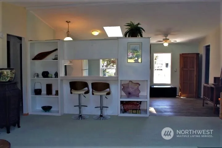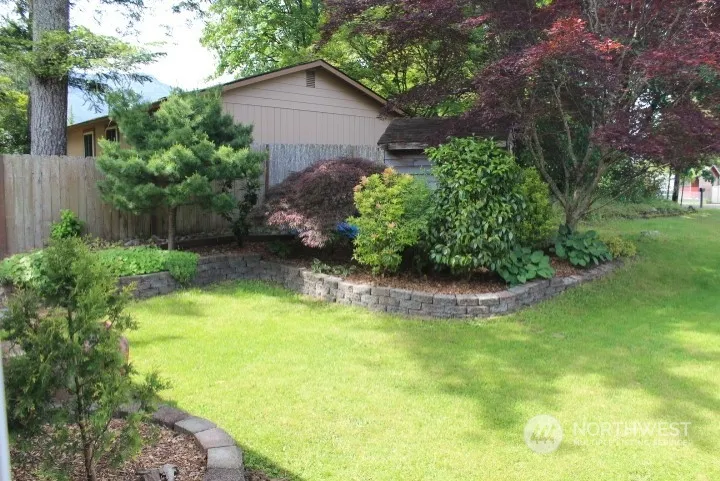 Situated against a greenbelt with mountain VIEWS. Prime Location- nestled on a private drive. Skylights, vaulted ceilings, shabby-chic cabinetry. Many upgrades; both plumbing/ceiling fixtures, newer flooring, interior exterior paint about 2020, skirting 2023. Pretty upgraded Alpine vinyl-line-double windows. Large main bedroom, soak-tub, double counter/vanity, generous cabinets, walk-in closet. Landscaped mature trees, shrubs, raised beds, driveway is a horse-shoe design for easy RV parking and weekend gathering- nice sense of privacy and the area dappled with small farms, creeks and rivers Remember, Wallace Falls State Park is “practically in your own back yard”- Stevens Pass Ski Resort just a straight shot up the mountain!