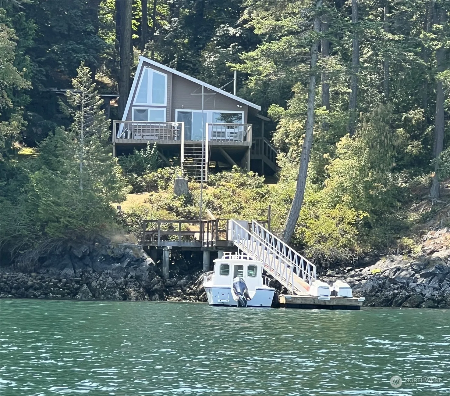 Amazing opportunity to own a home with a dock! Fishing and crabbing await! House is filled with charm. Large windows look out over the water so you can enjoy an amazing view from both the kitchen and dining area. Living room is kept cozy year-round by a wood stove and baseboard heaters and the main floor bedroom and bath enable one-level living. An upstairs loft is currently used for additional sleeping space and has view as well. The large deck is wonderful for enjoying summertime evenings and beautiful sunsets. Island has FT caretaker, private airstrip, clubhouse, trails and internet. Access by private boat or water taxi doesn’t get easier than this! Buyer accepts all contents of home and shop. Seller to remove a few art pieces.