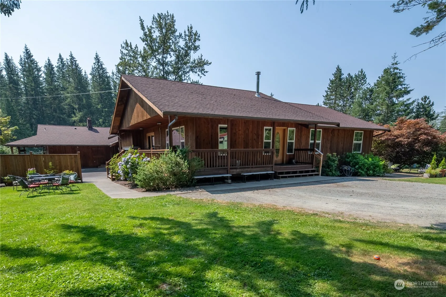 Rare Duplex Property with Stunning Mountain Views-featuring two custom-built homes separated by a garage and breezeway, each offering privacy and distinct character. Home 1: Rambler with Daylight Basement, custom, and quality materials throughout, and a partially covered deck, perfect for year-round relaxation. Home 2: Modern Rambler, designed with hardwood/tile throughout, a wrap-around porch, and a quiet patio, ideal for entertaining. Both homes have yards landscaped with established plants, providing a serene setting. The property also includes a barn and pasture, making it ready for horses, and is conveniently located near trails and Sultan River, a haven for outdoor enthusiasts. Don’t miss out on this beautiful property.
