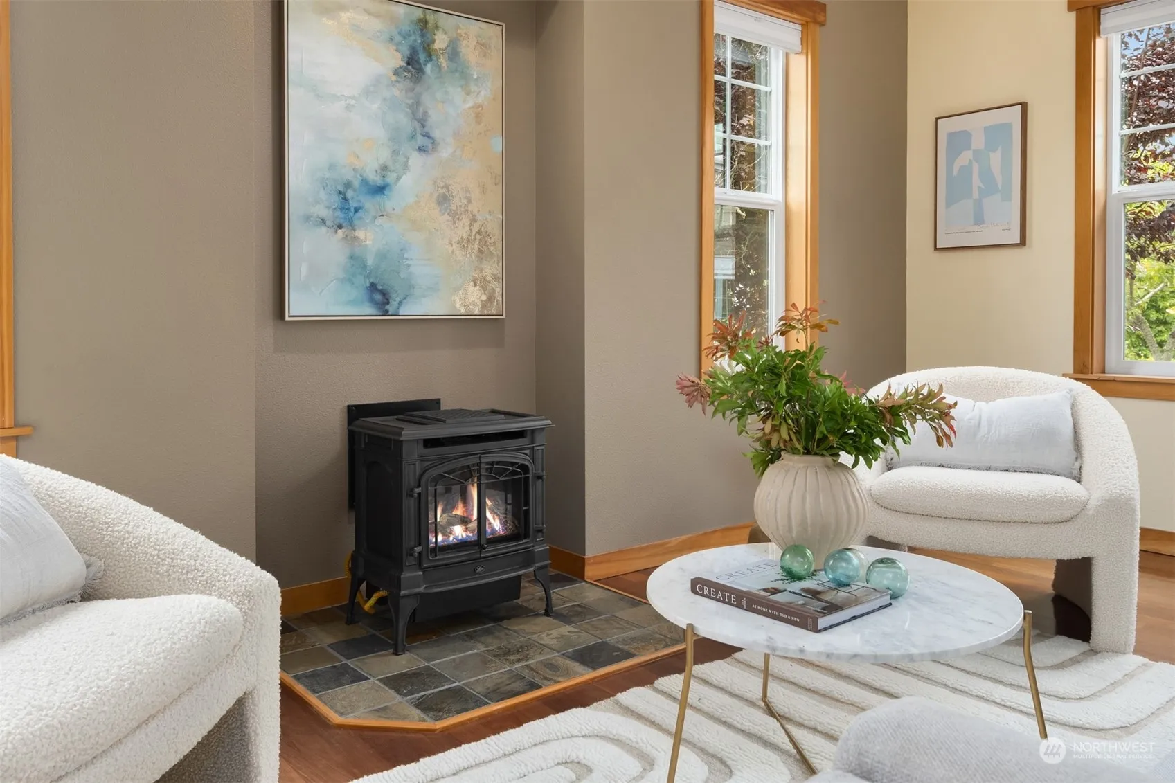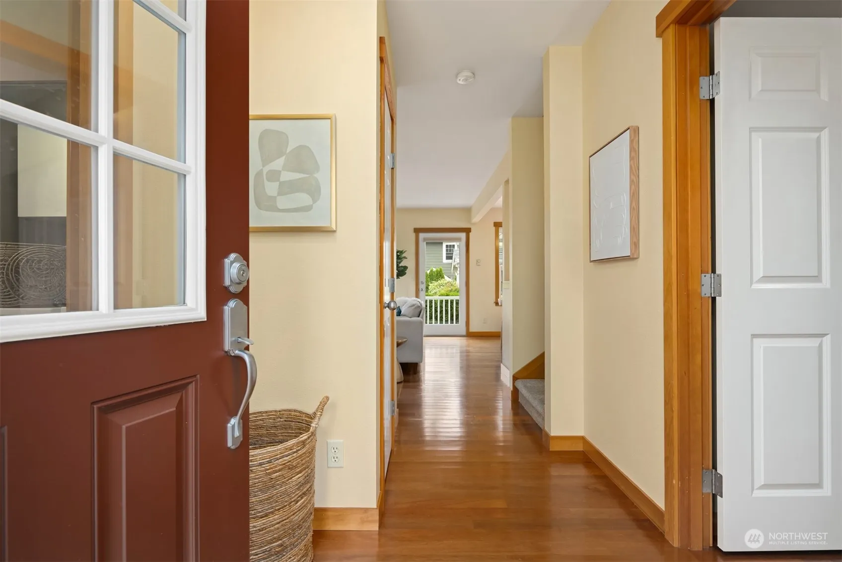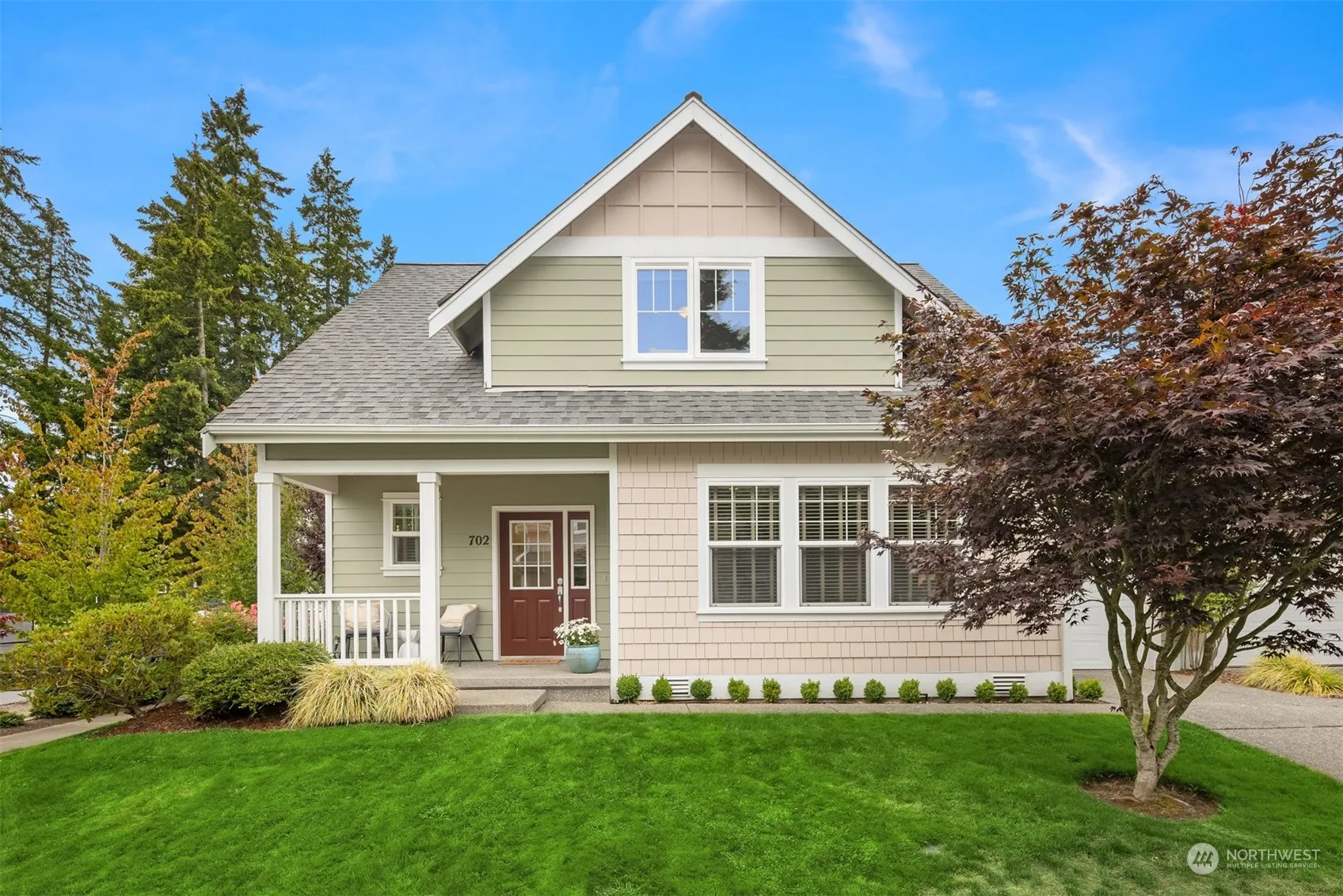 Coveted and spacious 3-bedroom townhome in the Stonecress Townhome Community. This townhome features a smart floorplan with a main floor primary bedroom suite. A sunny, south facing front porch welcomes you to this home. Beautiful Brazilian cherry floors throughout the main level. The living area includes a cozy propane fireplace, wonderful in cooler weather. The dining area opens to the kitchen, which boasts maple cabinets, updated appliances and a spacious pantry. Two additional bedrooms each with a generously sized walk-in closets & a shared full bath are located upstairs. Private 1-car garage with entry to the kitchen. Enjoy the best of Bainbridge with in-town living and easy access to shops, restaurants and the ferry.