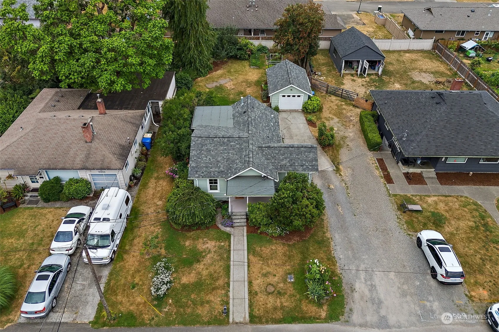 Cutest cottage on the block! Sited at the south edge of the popular Carlyon District, this lovingly maintained 1930’s home radiates vintage appeal from its charming front porch to original cedar siding. Lives larger than its footprint; light, airy open living & dining spaces, even a perfect WFH corner; with 2 BRs & updated bath. Plentiful storage – kitchen boasts tons of workspace, walk-in pantry. Newer appliances, all stay! Loads of updates: wiring, plumbing, roof (2021), new ext paint, new vinyl flooring, & new ductwork (2020). Your gardening dreams come true: large fenced yard, lush blooming landscape & gardens abundant w/produce – all the work is done, just pick & eat! Detached garage. Ready & waiting for you – make it yours today!