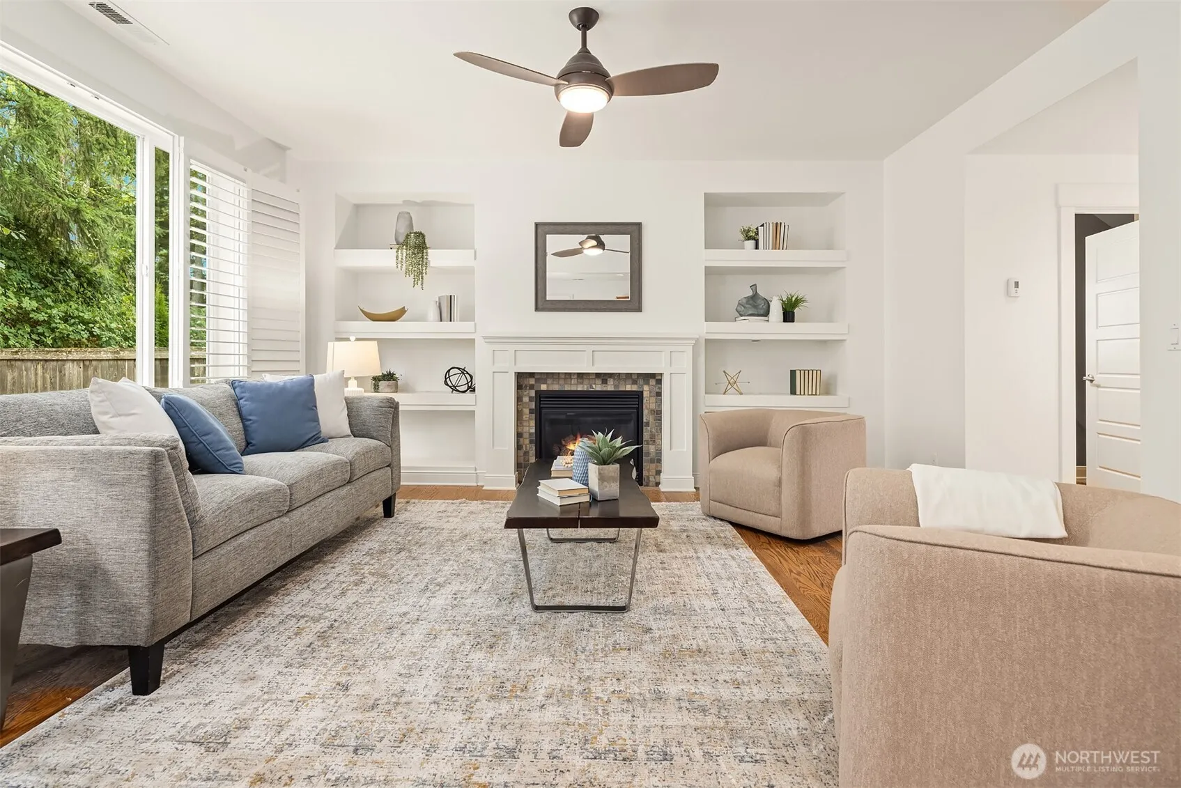 Well-maintained home in the highly sought Mill Creek Northpointe community. A covered front porch opens into a functional layout between kitchen, dining, & living spaces. The kitchen boasts an oversized island w/ bar seating & looks out to the backyard through sliding glass doors. The living room offers built-in shelving & large windows that fill that space w/ natural light. Upstairs, the primary suite has French doors, a 5pc bath & walk in closet. An additional bedroom, oversized bonus room (optional 3rd/4th bedrooms), laundry room, & full bath complete the upstairs. A private backyard perfect for entertaining. New interior paint & carpet. Prime location near Mill Creek Town Center, walking trails, Paine Field, I-5 & other amenities.