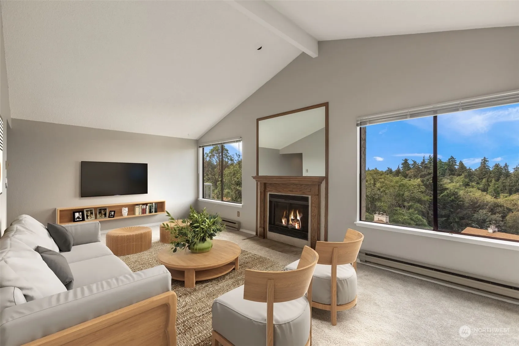 You’ll feel like you’re living in Seahurst Park! This is Sound Vista Condos, above the park’s greenbelt, you’ll enjoy Sound & Island views and nature around you. This top-floor home has a vaulted living room ceiling adding a spatial feeling, being an end-unit has only one shared wall. There’s a deck off the living room, with trees for privacy with sound view. Separate in-unit laundry room. Priced well below assessed value. Large 10’x11′ separate storage space. Cabana w/pool, sauna & jacuzzi. No Rental Cap. The two closest covered parking spaces are #17. Take a nature hike down to the water at Seahurst Park. Located just minutes to Highways 509, 99, & 518 to SEA Airport & shopping. Pets OK. New carpet, fresh paint, move in now!