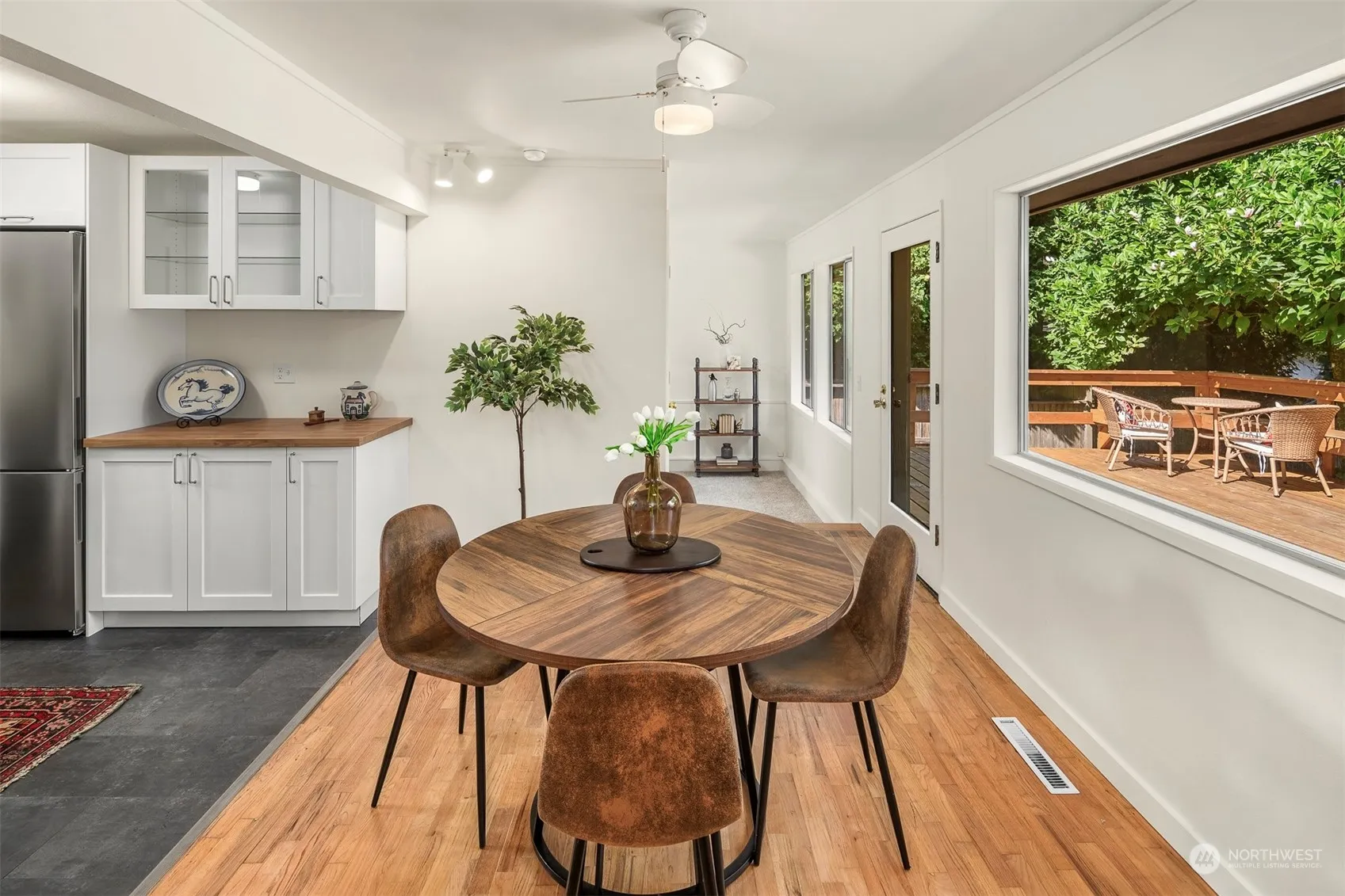 The epitome of Island Convenience! Shopping, Dining, Pubs, Galleries, Parks, Library, Farmer’s Market. All just blocks away from Town Center! This classic 3 BR, 1 1/2 Bath Mid-Century Rambler features a completely remodeled kitchen w/new cabinets, countertops, flooring, stove/range, fridge, dishwasher and microwave. Rustic refinished hardwood floors lend warmth and charm to interiors, as does the wood-burning fireplace in LR. Remodeled full bath, new 1/2 bath. Newly carpeted office/den with attached utility closet hosting a brand new washer and dryer! Step out onto a spacious deck that invites you to enjoy the privacy of a fully-fenced back yard punctuated by a handy storage shed and fire pit. Newly insulated crawlspace.