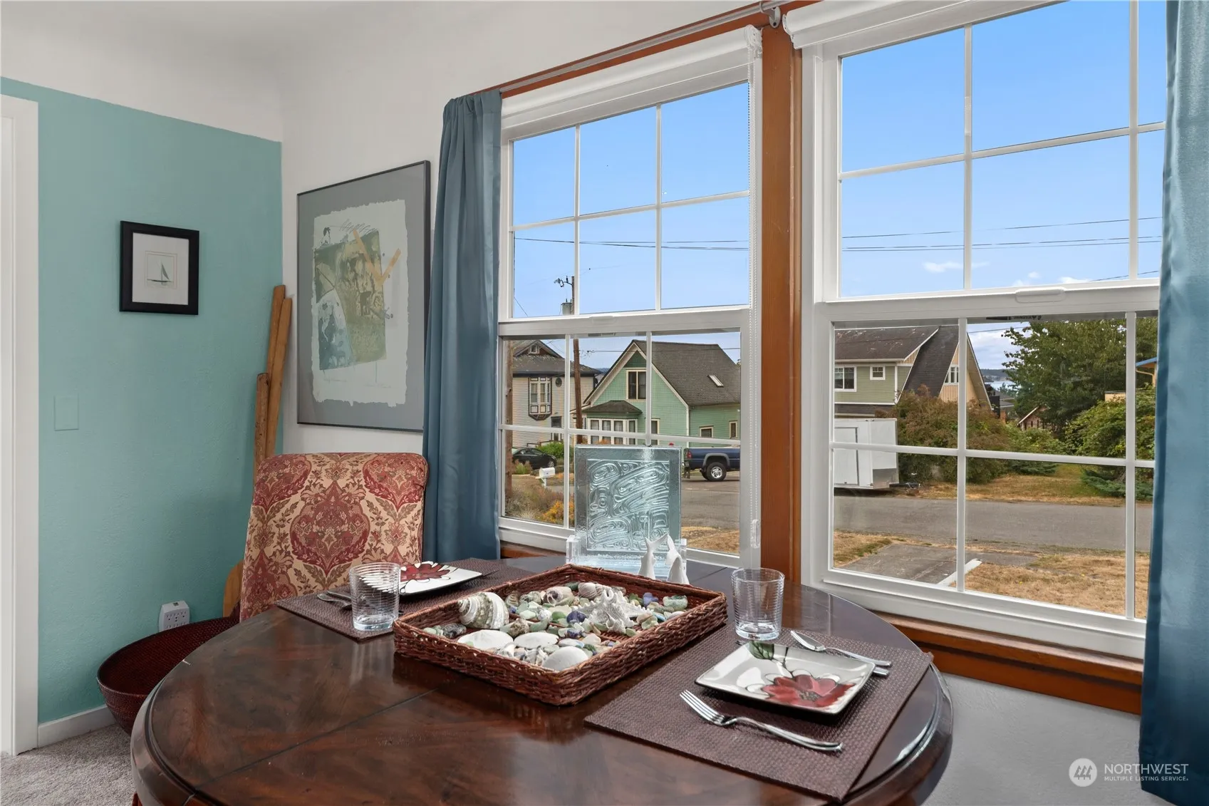 Home Sweet Home. Vintage Uptown Cape Cod 2BR home built in 1948 with features like arched doorways and cove ceiling. Sunny kitchen with a breakfast nook and views out to water and the town. Enjoy peaceful mornings listening to the seagulls and watching ferries cruise by. Daylight ground level has a large family room, delightful tile shower w/radiant floor heat, laundry & storage room + workshop. Newer ducted heat pump provides filtered hot/cold air throughout. Plenty of room for expansion or gardens. Imagine living in the heart of Uptown, close to downtown, shops, library, movies, cafes and the beach, the best of Port Townsend. Check it out.