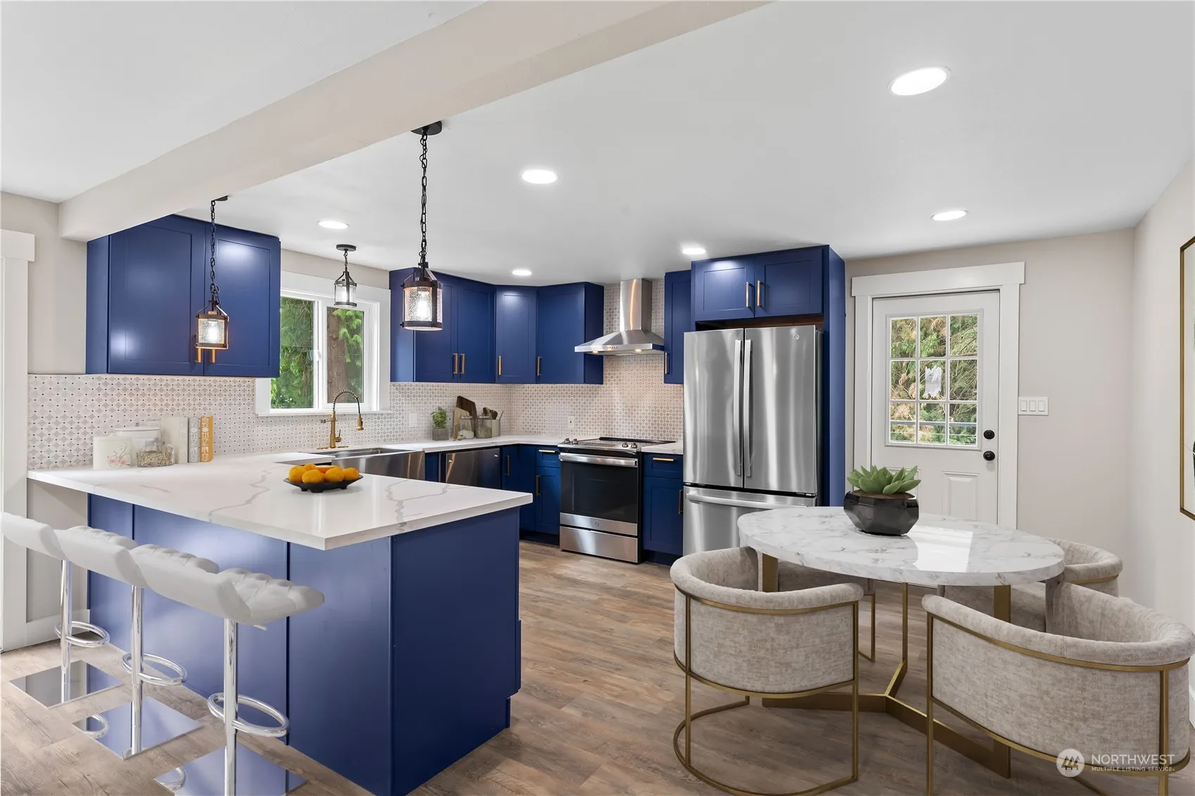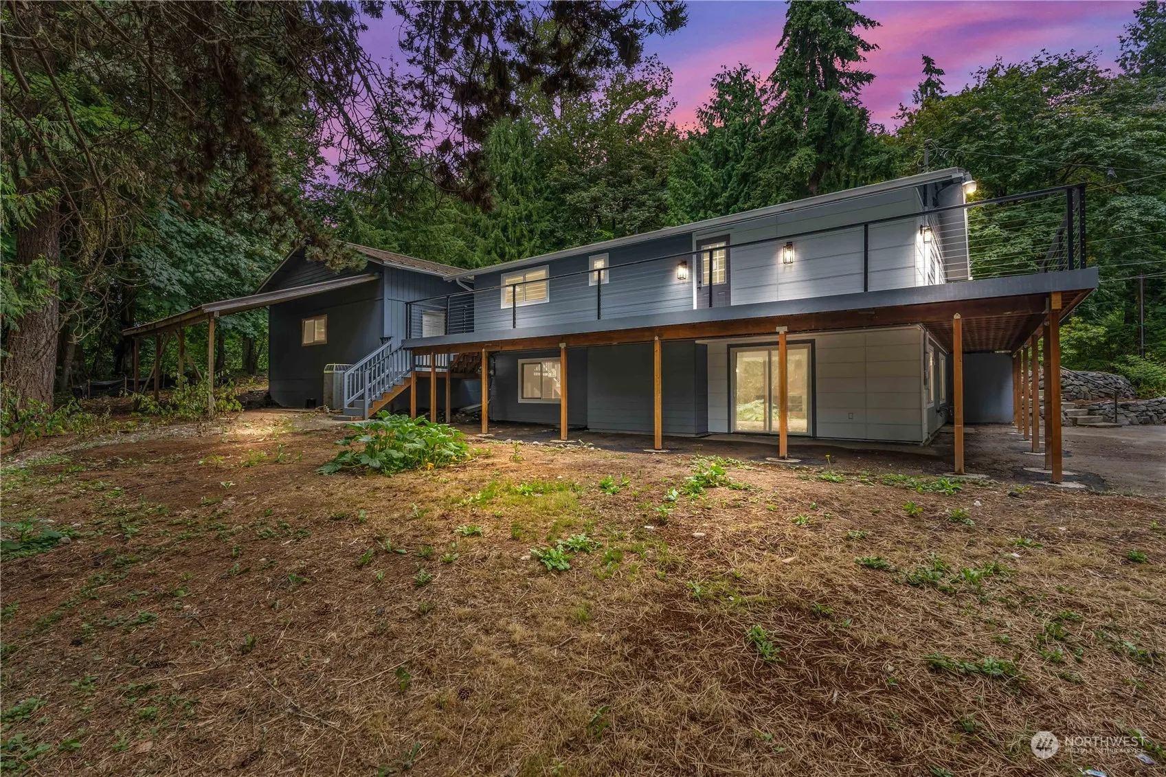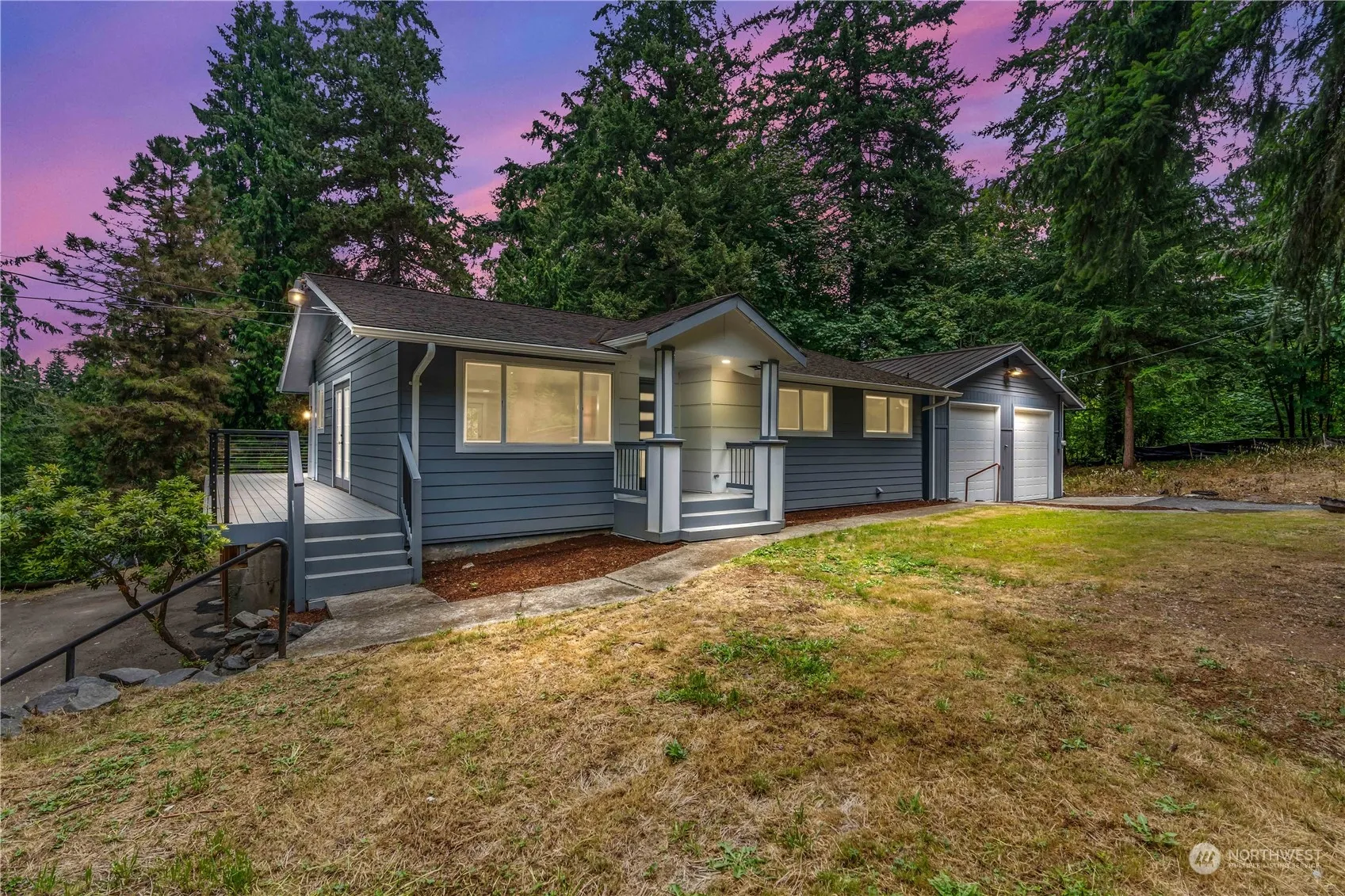 This meticulously remodeled project took 2.5 years to take down to the studs with full permits. This home is better then new! The bathrooms have been painstakingly perfected for each bedroom to have a private bath along with a half bath for guests downstairs. The deck was designed with access in mind, garage access along with from the front yard. Beautifully redesigned kitchen is ready to welcome the new owners. Walk in closet and ensuite make this primary with total privacy a dream. Sale includes two tax parcels totaling .75 acres with the opportunity to do with that extra parcel something exciting! Giant shop has a carport and 4 car capacity, with RV doors, and is separately metered.