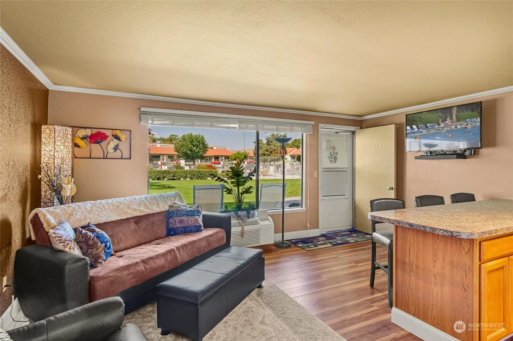 Crescent Bar Sewer assessment valued at 14k paid off! Fully Furnished and move-in ready! Located in a well maintained and gated community next door to the boat launch, this ground floor unit on Crescent Bar Island features one bed, one bath, and sleeper sofa for guests. It boasts all new luxury plank vinyl flooring, new LG Washer/Dryer, Kenmore oven , hot water tank and PTCA. It includes a ground floor patio and secure owners storage unit. This desirable full-time or rental property offers a large fenced pool, hot tub and splash pool for kids. CB also features year around recreation w/2 boat launches, gas dock, golf course, walking trails, a new wine tasting venue, 3 seasonal restaurants, and 30 minute drive to Gorge Amphitheater!