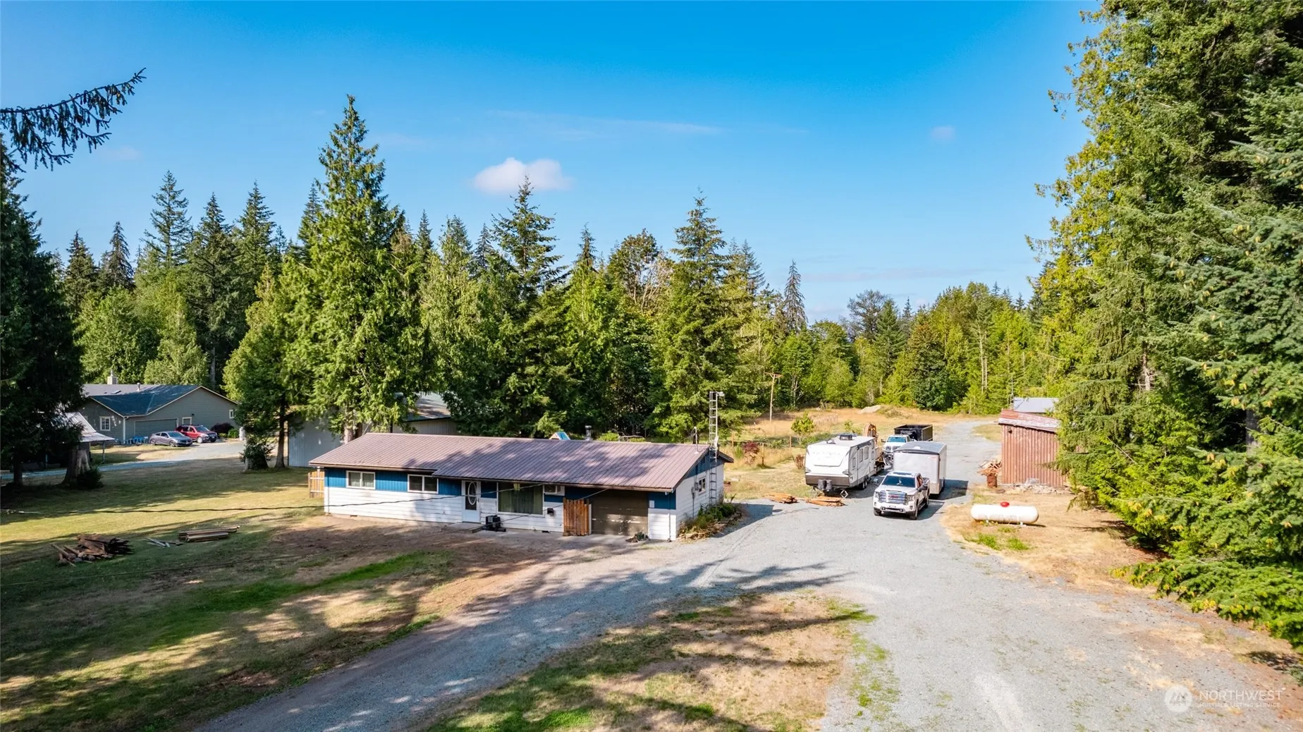 Lots of outdoor wonder in this shy 10 acre property. Complete with shops, carports, covered RV parking, and tons of flat land to build your dream home. Easy access to 9 with large circular drive fit for your toys. House comes with brand new windows, new flooring, three bedrooms and a remodeled bath. Newer paint, trim, ducting and much more. Large living room w/forced air heat, and wall AC unit. Kitchen leads dining area Lots of possibilities on this property and seller started the process of planning a new home in the back. Trails through the wooded portion of the property for lots of recreation. Transform this acreage into your own private oasis.