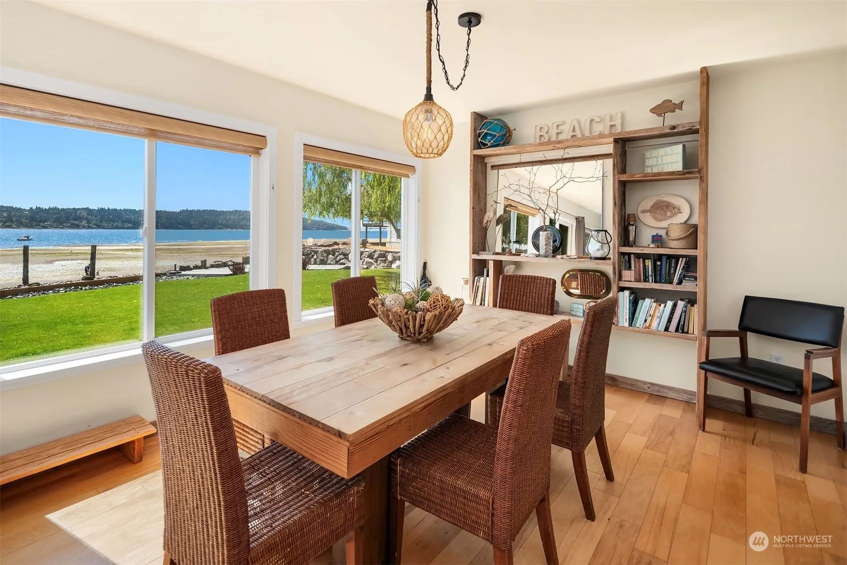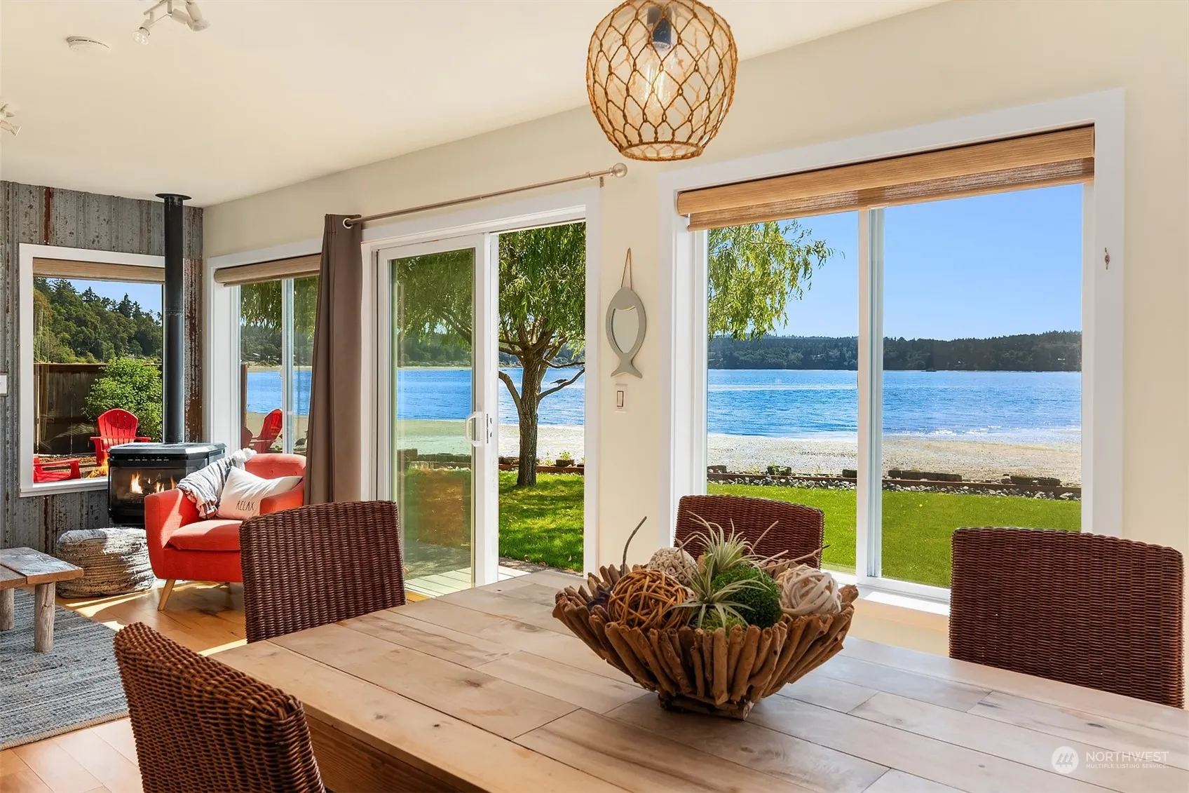 Delightful three-bedroom Burton beach cottage offers 150′ of low-bank waterfront living, perfect for those seeking tranquility and natural beauty at the water’s edge. The stylish home’s open concept interior has hardwood & tile flooring, 2 cozy freestanding gas stoves, sweeping views of outer Quartermaster Harbor & sunrises over Mt Rainier. Outside you’ll find a mostly fenced yard, side patio w/picnic bench, barbeque & fire pit, smart irrigation system, fruit trees, kayak launch, waterfront deck, sandy beach and a licensed aquatic mooring buoy. This home has been a successful short-term rental, presenting a fantastic investment opportunity most furnishings can remain. Land extends across the street and includes the old garage