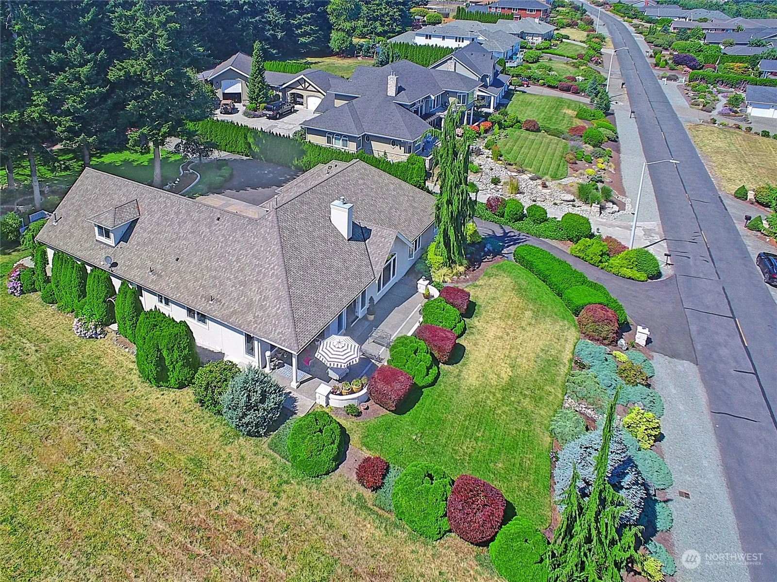 Impeccably maintained and perfectly situated on a generous lot for expansive views encompassing Mt Baker, Pt Susan and sunrises over the Cascades! This elegant home is centrally located in the gated and desirable Camano Hills Community. Every space is well thought out and easily accessed on one level for easy living. 3 bedrooms, den/office, living, dining and kitchen all on the main level with an open concept for easy entertaining and a large flex space over the garage w/bath. Oversize garage with workshop space and workout space. All on a level and beautifully landscaped lot that adds privacy to the space, includes a 16 x 20 shed, a gardener’s dream. Every space welcomes you to relax and enjoy all that the Island has to offer.