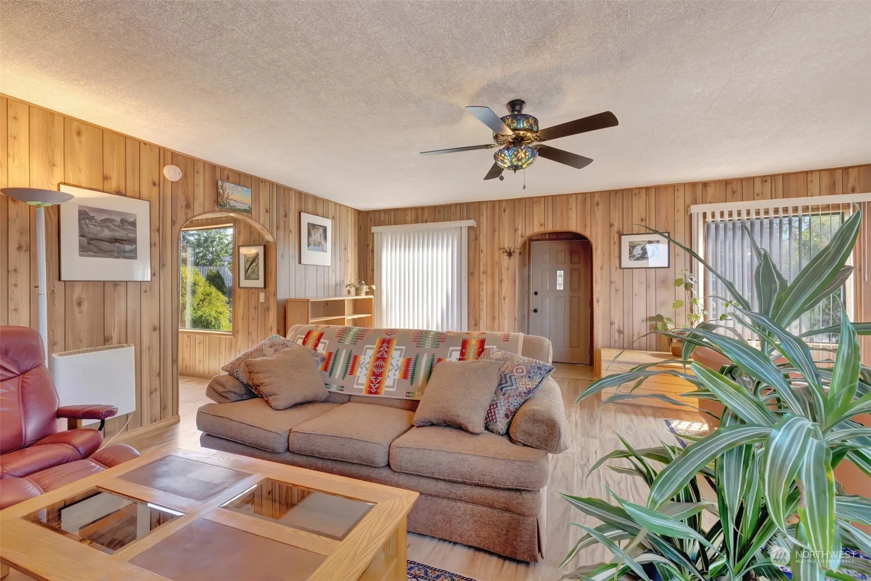 Take in the views of Mt. Baker, Vancouver Island & the Straits, while watching the sunrise or sunset from the deck of this 2BR, 3/4BA home. Walking distance to a local beach trail, a short drive to downtown, eateries, shops & close to the ODT, this live larger than it feels home boasts an updated bathroom & bedrooms, newer floor throughout, large windows allowing in natural light, utility / pantry room, woodstove, ductless heat pump and more. Outdoors enjoy the garden area, with raised beds & fruit trees (apple, cherry, pear), red & black currant and raspberry bushes, two decks (one covered), the unfinished basement with plenty of work or storage space, an additional storage area, RV parking, plenty of room to entertain and more.