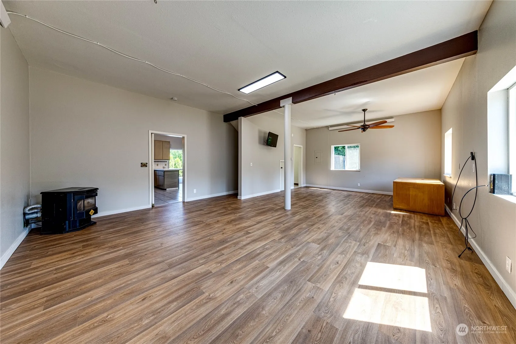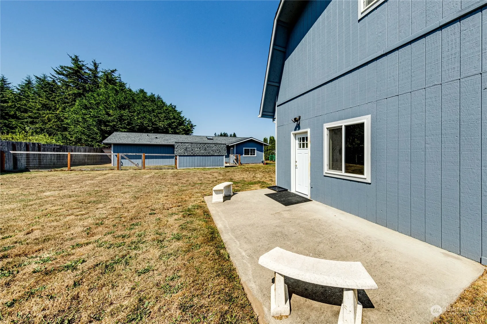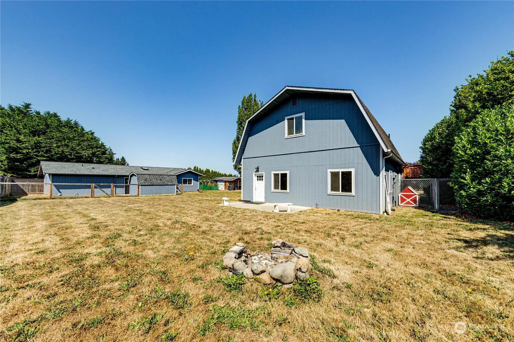 EASY LIVING! One flat completely fenced in acre, in the Agnew area. 2 structures: 1944 sq ft main house features 2 bedrooms, 1 bath, kitchen with many cabinets for storage, super spacious living room, laundry room, and a 736 sq ft guest house with 1 bedroom/1 bath, large kitchen, big living room with pellet stove, laundry room and separate fenced in patio. Many windows around allowing light into the home at all times. Extremely peaceful setting, tucked in conveniently between Sequim and Port Angeles. Main house with new exterior/interior paint, newer flooring and a beautifully crafted newer deck. Large concrete pad is ready for a shop, garage/outbuilding. Sellers never used Agnew Irrigation-Buyer can verify any info regarding irrigation.