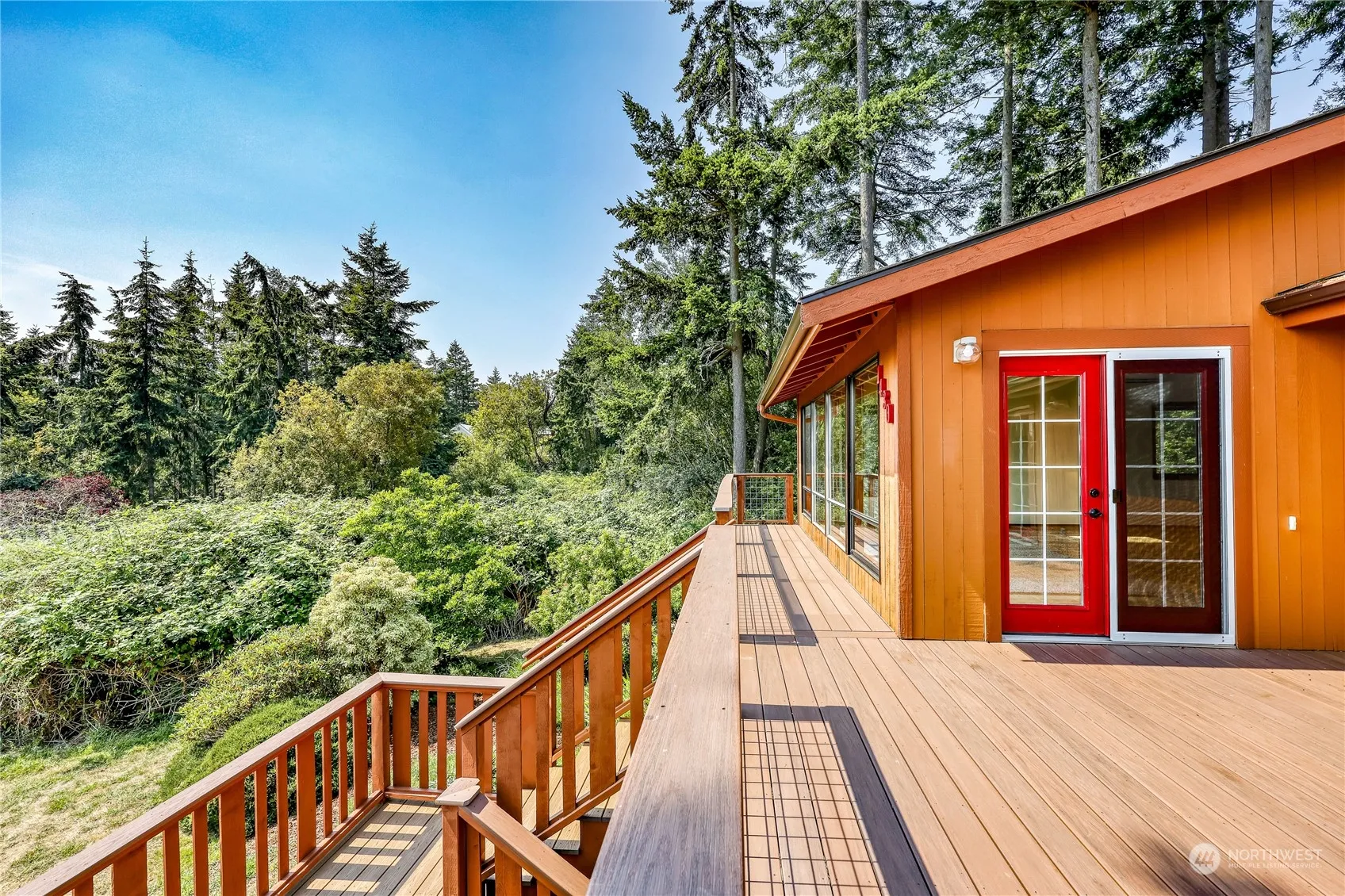 Very private home located on a dead-end St, next to a ravine, that is a city street. South facing deck lovely for morning coffee & wonderful evening BBQ’s. Large living room windows & skylights, bring in the light, warmth from solar gain, & views the green scenery. New mini-spilt keeps the home warm & cool year-round. Large kitchen open to the dining area & living room, easy entertaining. Primary bedroom w/walk in closet, bathroom w/shower, & French doors to the deck. Downstairs boasts a large great room with outside access, bedroom with full bath, laundry & large garage. The great room could be used for a business, massage studio, art studio, playroom, what would work for you? All of this & so close to shopping, banking, hospital, & bus.