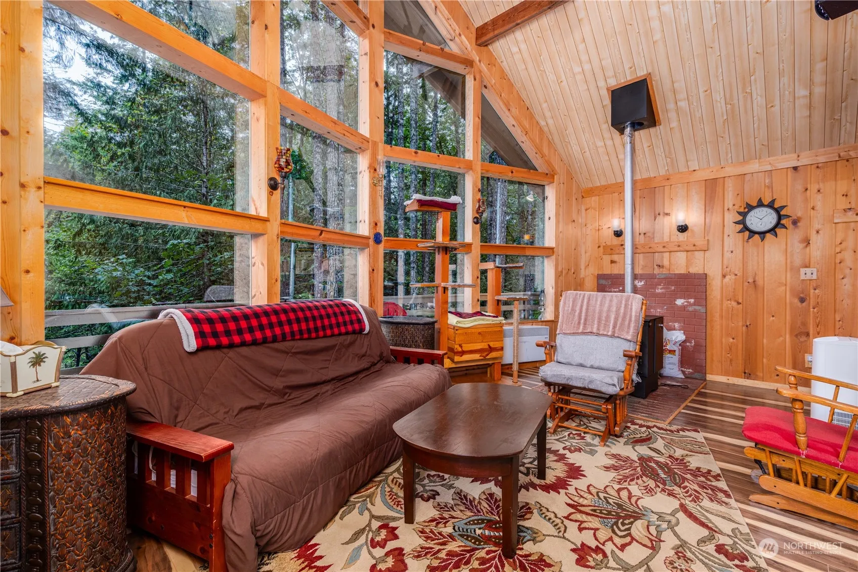 Sweet little A frame cabin with one bedroom, 3/4 bath, and common area on main, plus spacious loft with endless options. Sky high ceilings and enormous windows bathe the entire home in beautiful natural light. This cabin is located in Division 1, just minutes from the private park and boat launch on Lake Cushman. Lots of great upgrades throughout including new floors, cabinets and metal roof. With most furniture included, this cabin is ready to enjoy.