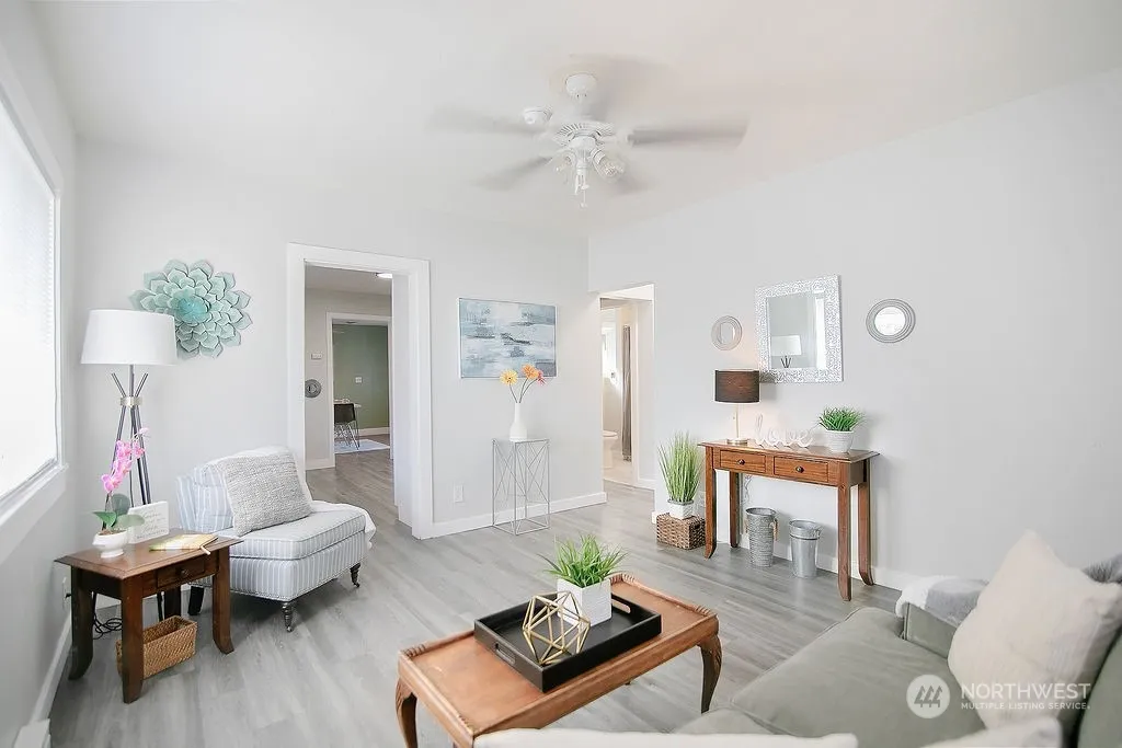 Kelso — 1 Level — 3 Bedroom / 2 Bathroom — UPDATE & REMODELED — Living Room — Kitchen w/ Butcher Block Countertops & Stainless Appliances — Large Dining Area — Vinyl Windows — Laminate Flooring — Ceiling Fans — Single Car Garage — Front Porch — Fenced — Yard — Garden Space — Easy Commute to PDX/Vancouver