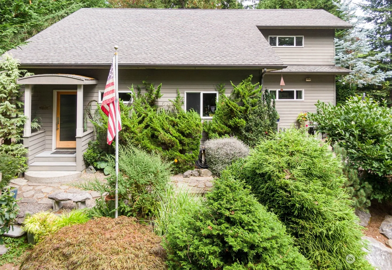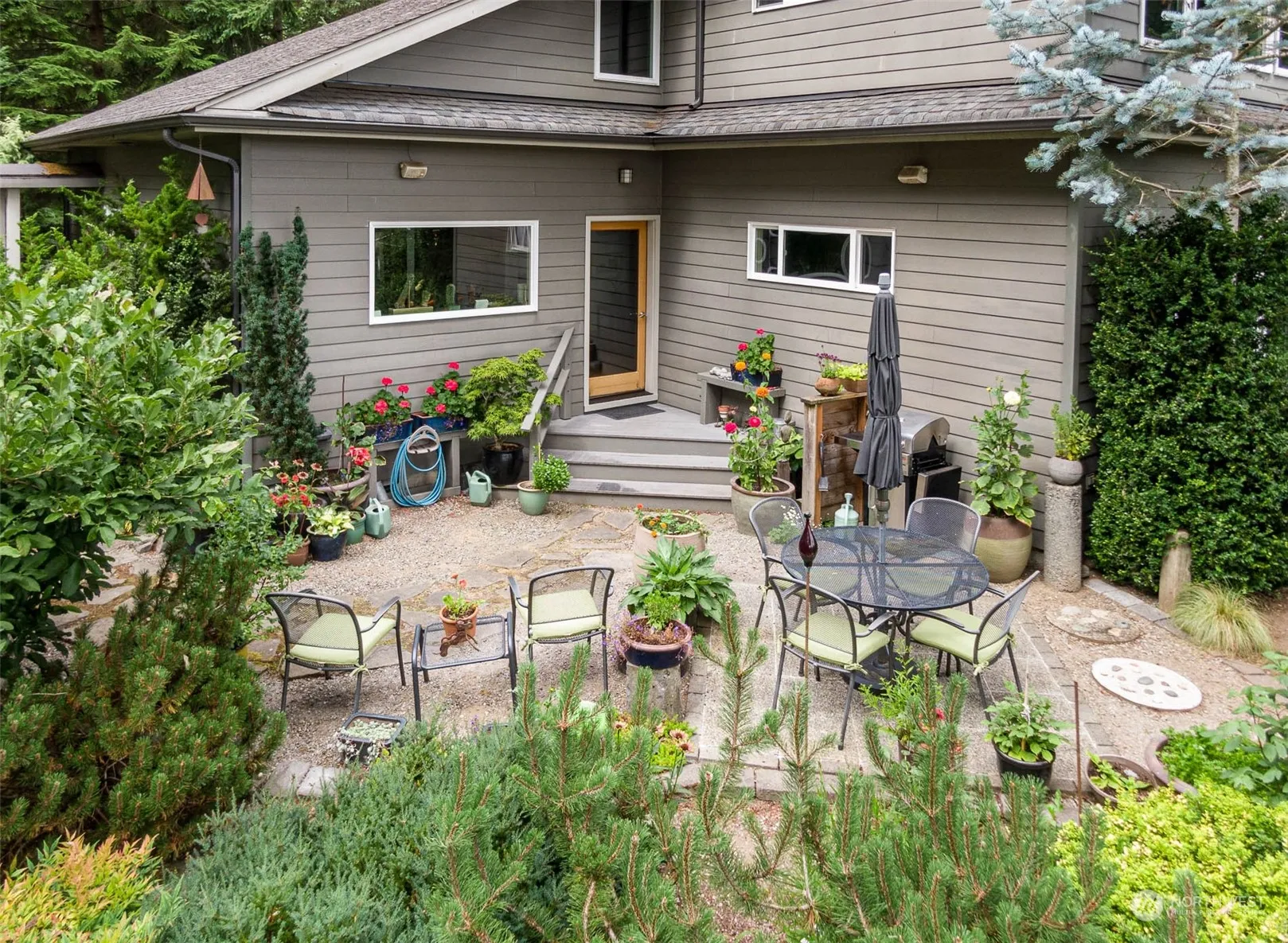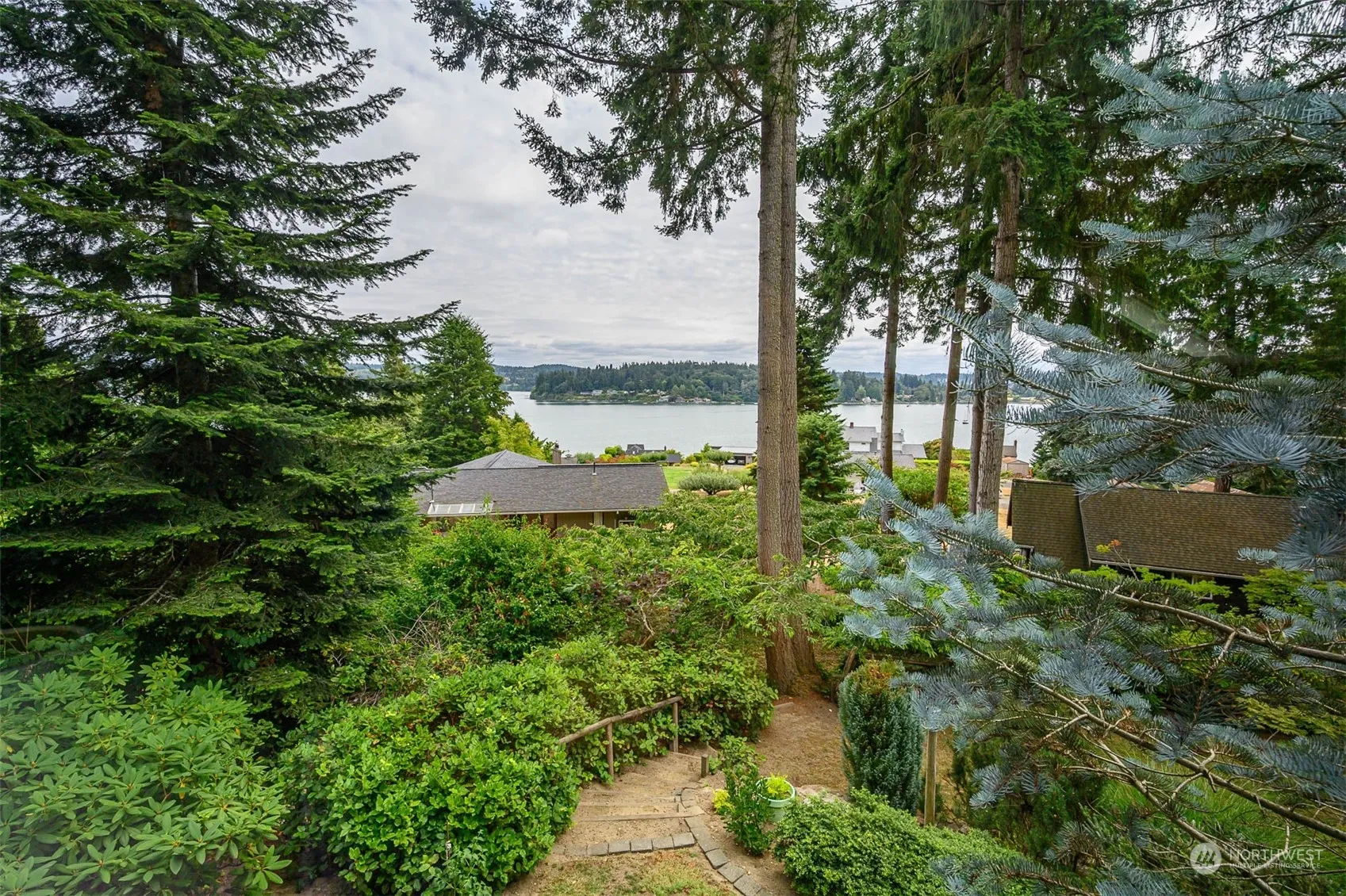 Rarely does one find a property that is remarkable in every way—a gem! Surrounded by a perfect, lush, yet manageable garden, with a view across the inner harbor to Mt. Rainier, this 2,455 sq. ft. home is unusually fine! A smart floor plan, quality finish materials, and a mid-isle location make living comfortable and easy; there are three bedrooms, two 3/4 baths (with showers), and a guest half bath, a generous multi-purpose room for library or office, and a two-car garage. Comcast, a natural gas fireplace, bamboo floors; this is a feel-good house! Never on the market before, seize this opportunity to own a forever place!
