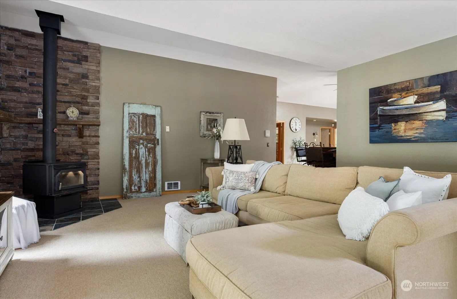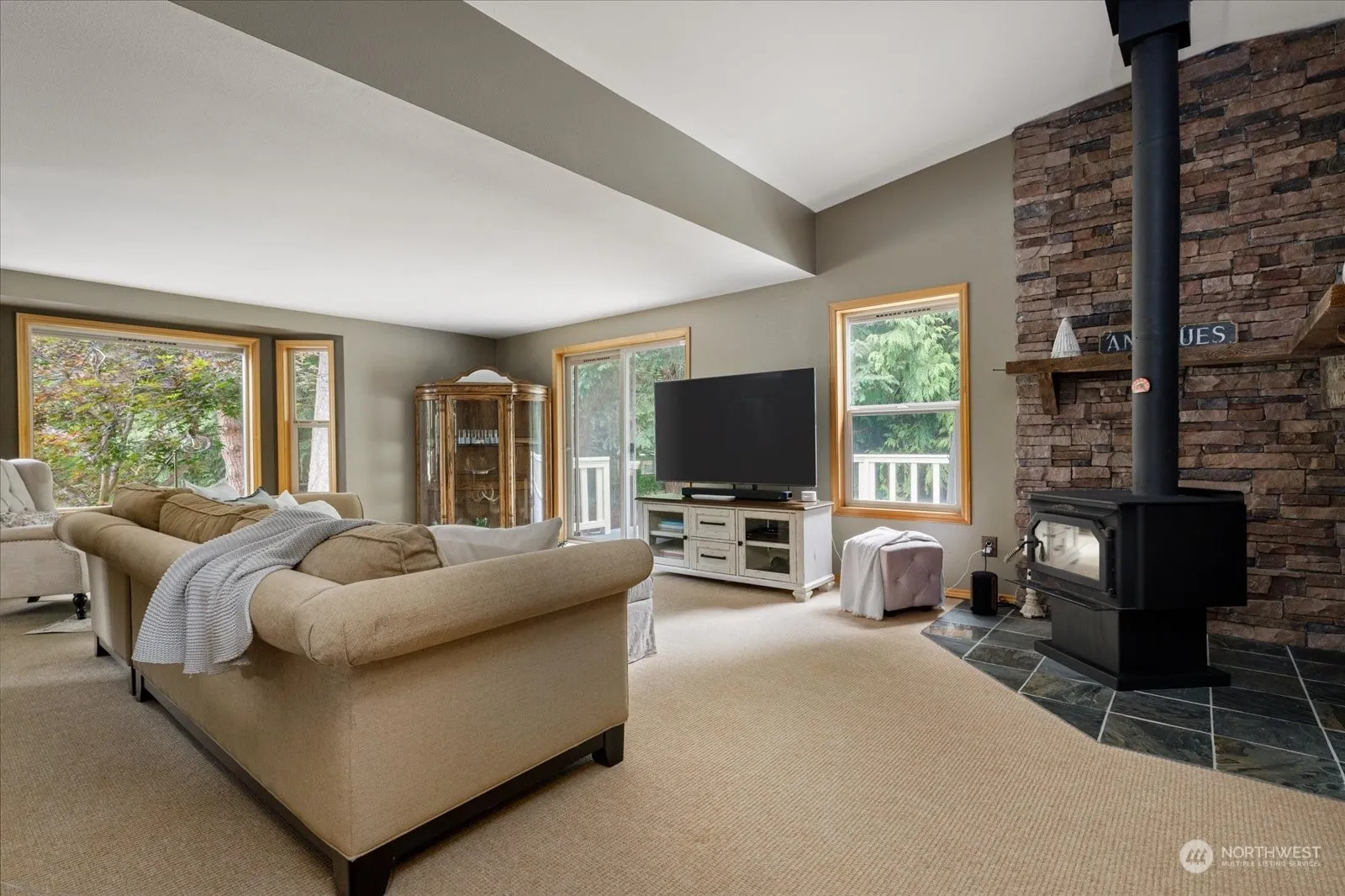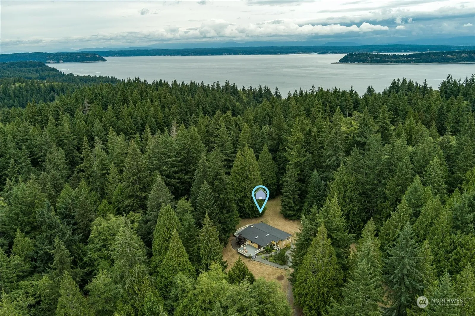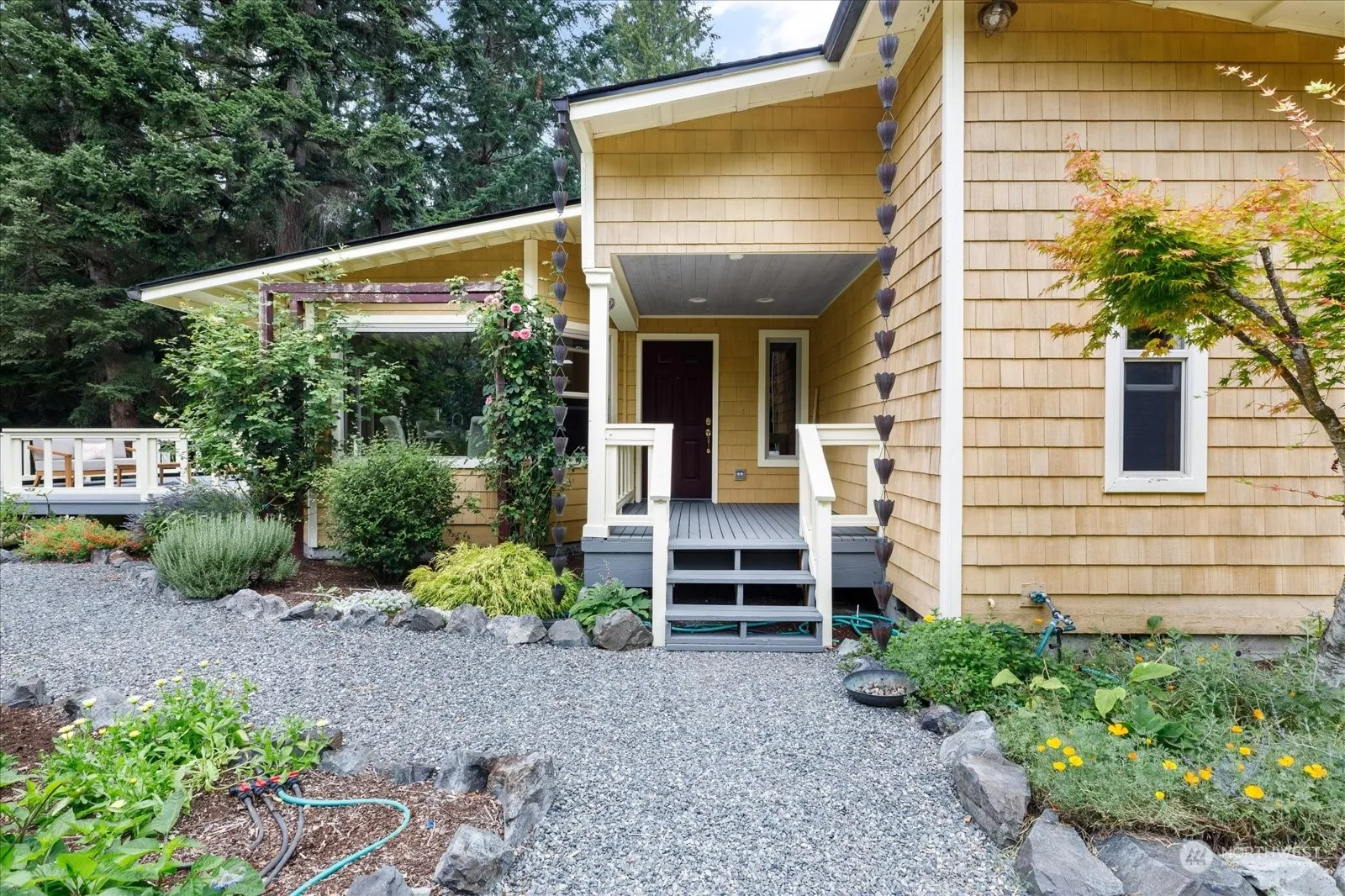 Experience island living in this charming Craftsman home on 8.22 ± acres adjacent to an additional 45 acres of Island County land for maximum privacy. The open floor plan features vaulted ceilings, a spacious kitchen, and an entertainment room, perfect for lively gatherings. The primary suite offers single-level living with an en-suite bath. Outdoors, enjoy two expansive refinished decks, a large hot tub, a fire pit area, and trails for walking, biking, or riding. Surrounded by old-growth cedars, this property also includes a versatile garage-studio-shop for all your toys and talents. With a new roof and private grounds, this home is perfect for recreation, creativity, or simply relaxing in nature. 10-min from the ferry and move-in ready!