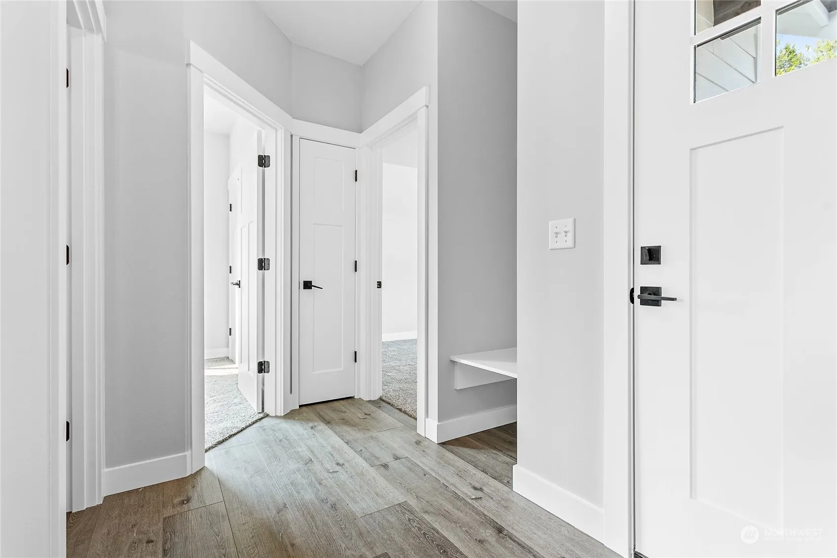 Beautiful modern new construction home for sale in Nooksack! This new home includes 3 bedrooms, 2 bathrooms, 1497 sq/ft, hard surface countertops, light and bright interior colors featuring an upgraded lighting package and SS appliances. Tall 9′ ceilings throughout, upgraded black window package and lighting package and beautiful gas FP. Through the large windows in the living space and from the covered back patio enjoy beautiful views of the foothills.