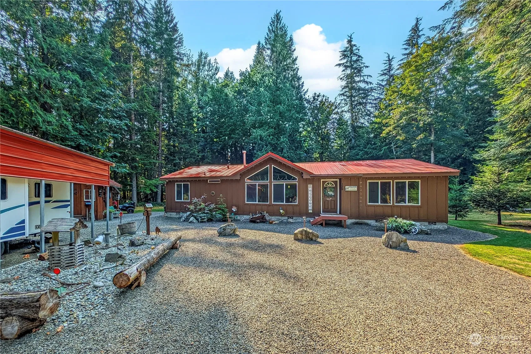 You have to see this! Gorgeous open living home in gated community with short distance Packwood. 3 bedroom & 1 3/4 bath, so many extra touches, lots of wood trimmed double paned windows, vaulted ceilings, 36″ wooden doors, propane fireplace and heat pump, dining room. Outdoor shower house with 3/4 bath, cooking kitchen with power and water, gazebo eating area, fire pit, woodshed, shop, implement storage, all on 1 acre! RV hook-up: 1 full and 2 with power and water. This is truly amazing! Enjoy hiking, skiing, biking, fishing or just relaxing!!! Come take a look!