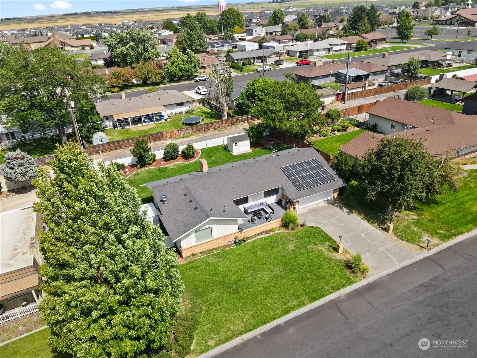 GREAT LOCATION! Check out this beautiful home that was remodeled in 2021. This 3 Bedroom 2 Bath, offers new laminate flooring, granite countertops, new cabinets, and much more. SOLAR panels bring OUTSTANDING energy savings on utility prices!! A stunning fireplace next to the dining room! Spacious Utility room! An amazing patio that’s great for entertaining! Underground sprinkler system & 2 car garage. Alley access to parking, great for RV/Boat! This home is next to the Lions Park! Call now and schedule your showing today! This home can be yours!