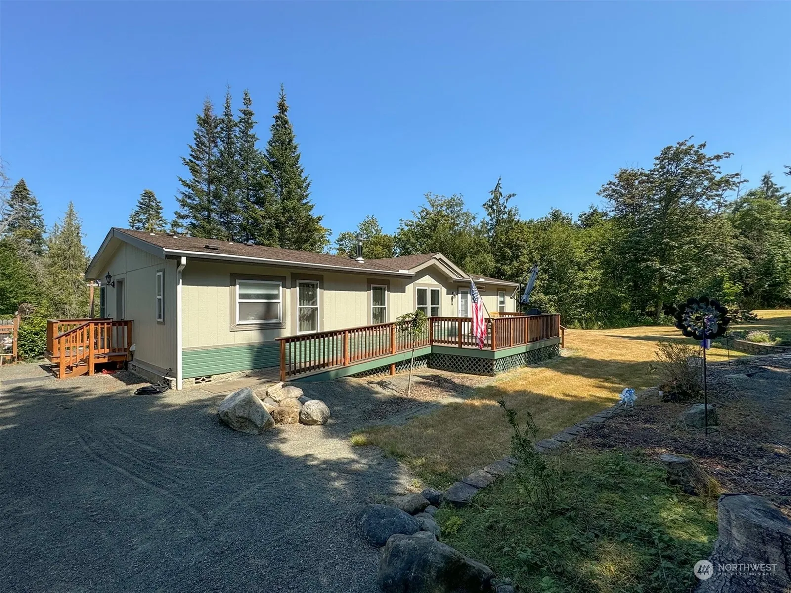 This home nestled on 2.8 acres between Sequim & Port Angeles features 3 bedrooms and 2 bathrooms, perfect for those seeking a peaceful retreat. Permitted furnished & rented ADU of 720SFT (1 bed 1 bath) offers immediate income or generational living options. The main house boasts a propane stove, heat pump, super filtration system, lux vinyl & laminate flooring throughout, and all newer appliances for your convenience. Step outside onto the newer composite deck and take in the serene pond and mountain views. The property also includes a detached 860SF garage with a 12×20 shop, carport & garden area with partially finished hobby space. Don’t miss out on this unique opportunity to live in a tranquil setting with modern amenities.