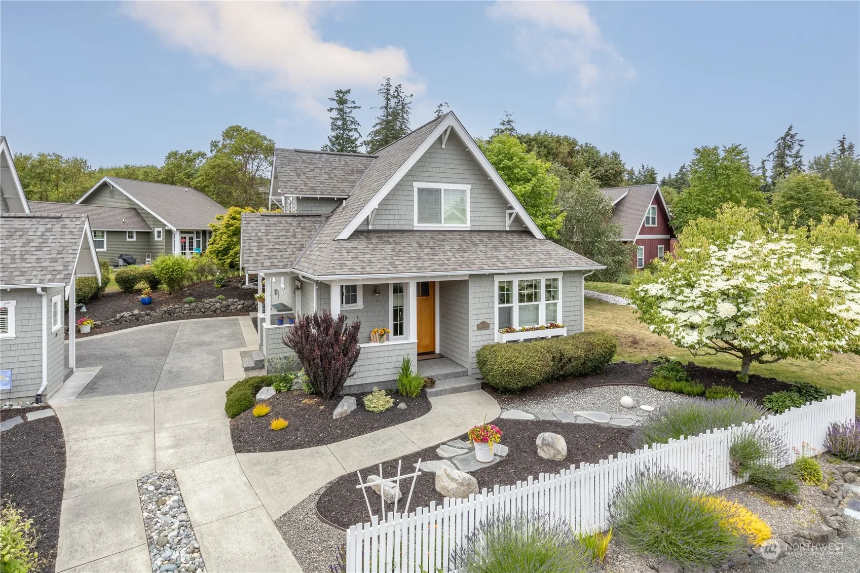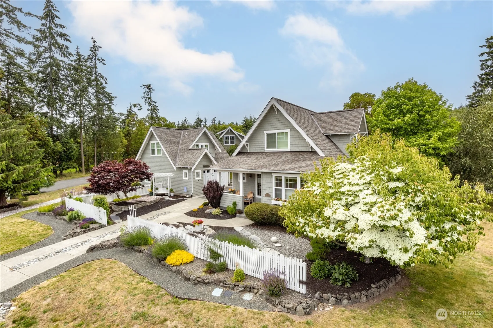 Timeless, turn-key Craftsman-style home with separate ADU. Meticulously cared for sunny 2-story 1536 sq ft home, spacious open floor plan. Primary BR w/ensuite bath; hardwood floors & gas fireplace & range, covered porches, guest 1/2 bath. 2nd level: BR, full bath & flex space (office, studio, bonus room). Carriage House: 633 sq ft ADU above the roomy garage with a kitchen and full bath. Ideal for a studio or rental, fully furnished option available. The yard features a terraced level in the back, flowering plants, and a pergola & cedar picket fence. Great value w/rental potential; NEW appliances, water heaters, paint, exterior stain & roof. Like a new home + Green-built! No HOA, but CCRs. Friendly neighborhood minutes from Port Townsend.