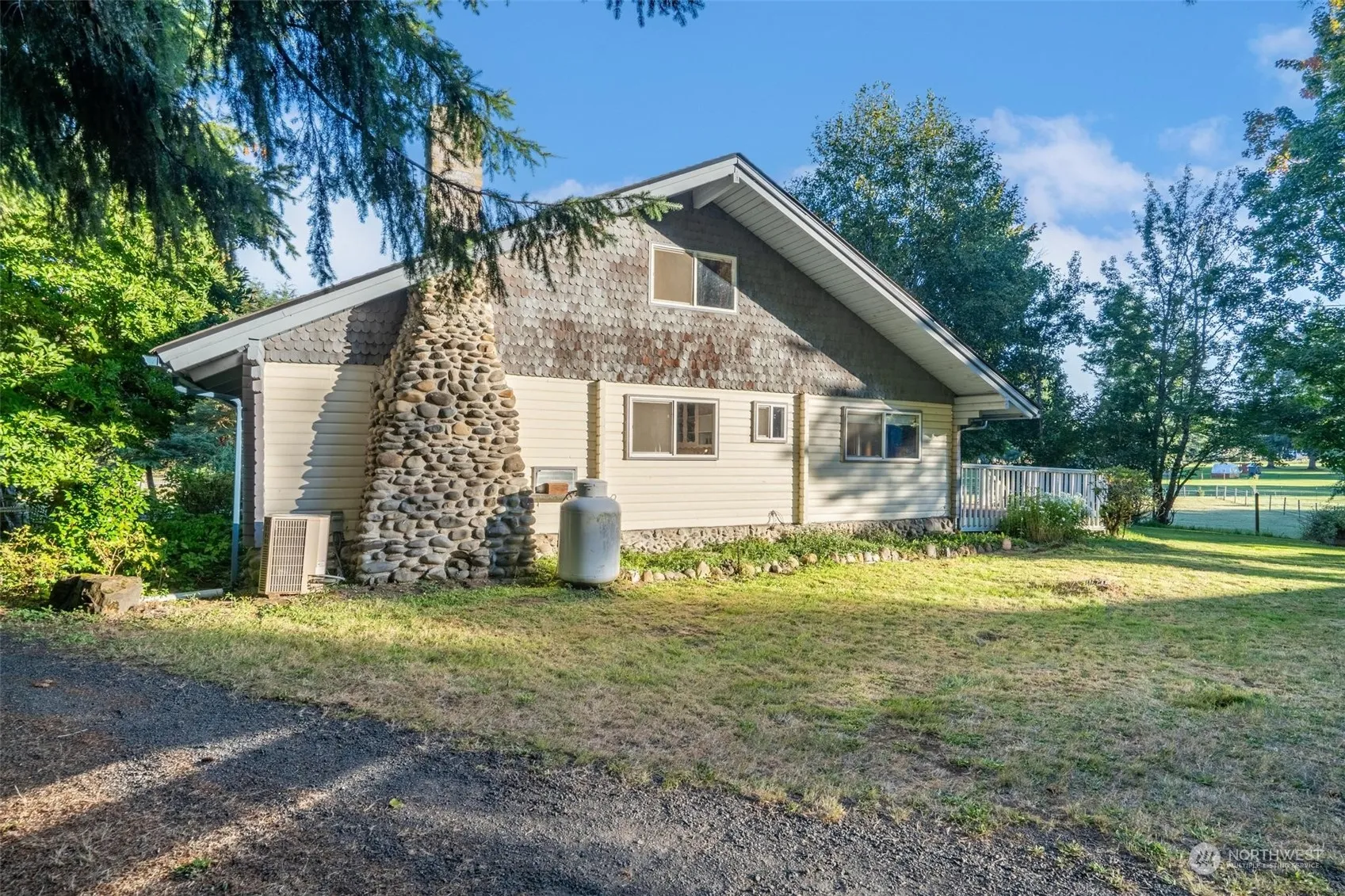 Situated on picturesque Burnt Ridge, this tranquil equestrian retreat offers the prime getaway. Just 15 min from the freeway & halfway between Seattle & Portland, this gorgeous split-log home has a large open living room ideal for hosted gatherings & daily living. The property is well-kept & features New Zealand cross-fenced pastures, animal facilities-including large barn w/ stalls & safe paddock. Lush mature trees w/ walking paths & seasonal stream offers peaceful seclusion & the deck & pasture boasts territorial views of Mt Adams & St Helens. Additional amenities include a large metal/wood shop, detached garage, art studio w/ ADU potential, & orchard. 1/4-mile from the entrance of 11-mile loop of Backcountry Horsemen maintained trails.