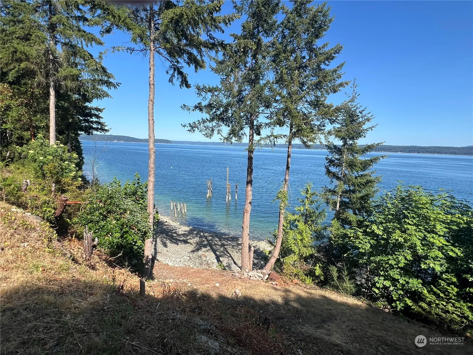 Your opportunity to own low bank Hood Canal waterfront with 2 RV sites with water, power, and septic already installed. Even more room for additional guests. Ready for use now while planning your dream home. This unique property, was once chosen by the state of WA as a ferry landing in the 1950s offers deep water moorage. Select tree removal and trimming have enhanced stunning views of Hood Canal and the boats entering Pleasant Harbor. An outbuilding on the property features a hot water tank, shower, and toilet, along with plumbing for a washer and dryer. Plenty of space for a garage across the road and parking. This property is well worth your consideration for its rich history and incredible potential.