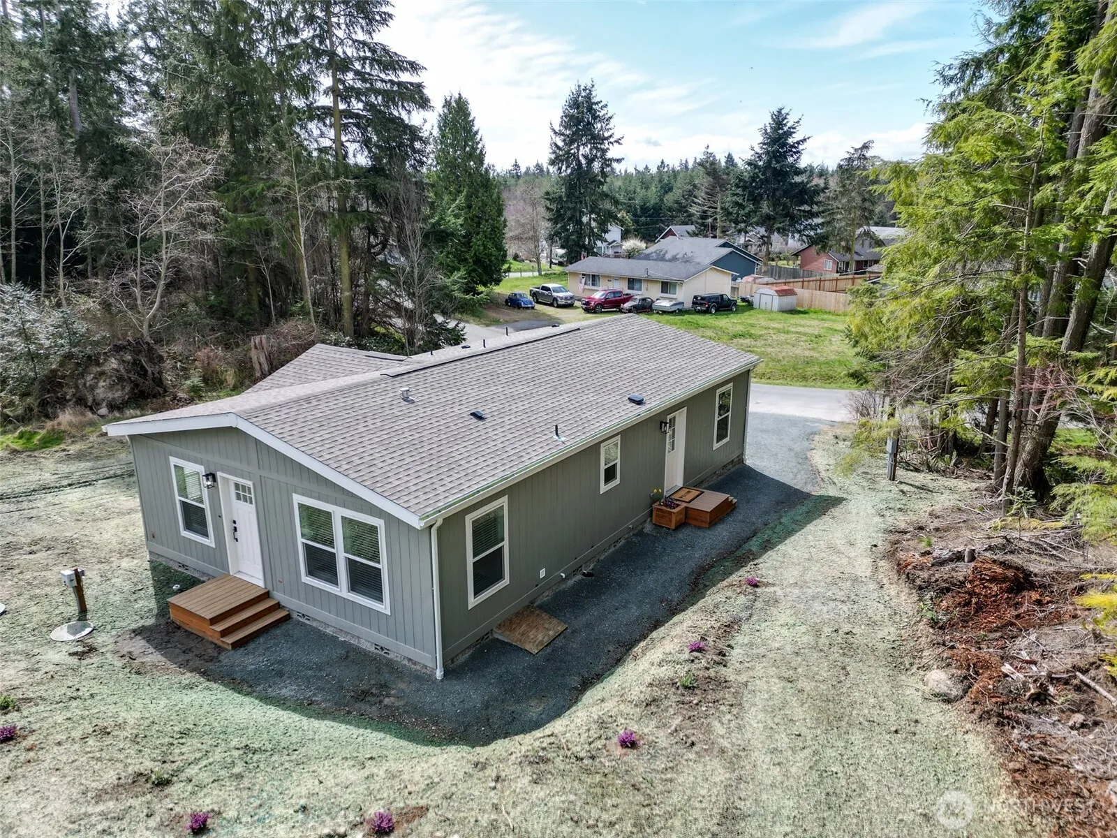 This sunlight filled & brand new NRG Star rated 3-bedroom home provides comfort, peace of mind and ease of maintenance. The home is mid-island for convenient access to shopping and employment, schools & hospitals & NAS Whidbey. The primary suite features twin closets & en suite bath with double sink vanity. The spacious kitchen features stainless appliances and a huge center island for easy meal prep & entertaining. Enjoy both the bright living room & cozy flex/ dining room. This neighborhood has a park as well as a private beach on Puget Sound. Full slab foundation & FREE community bus stop 1 block away. Large back yard w/ potential RV parking. This home is also both AC and solar panel/photovoltaic ready and ready to be your new home!