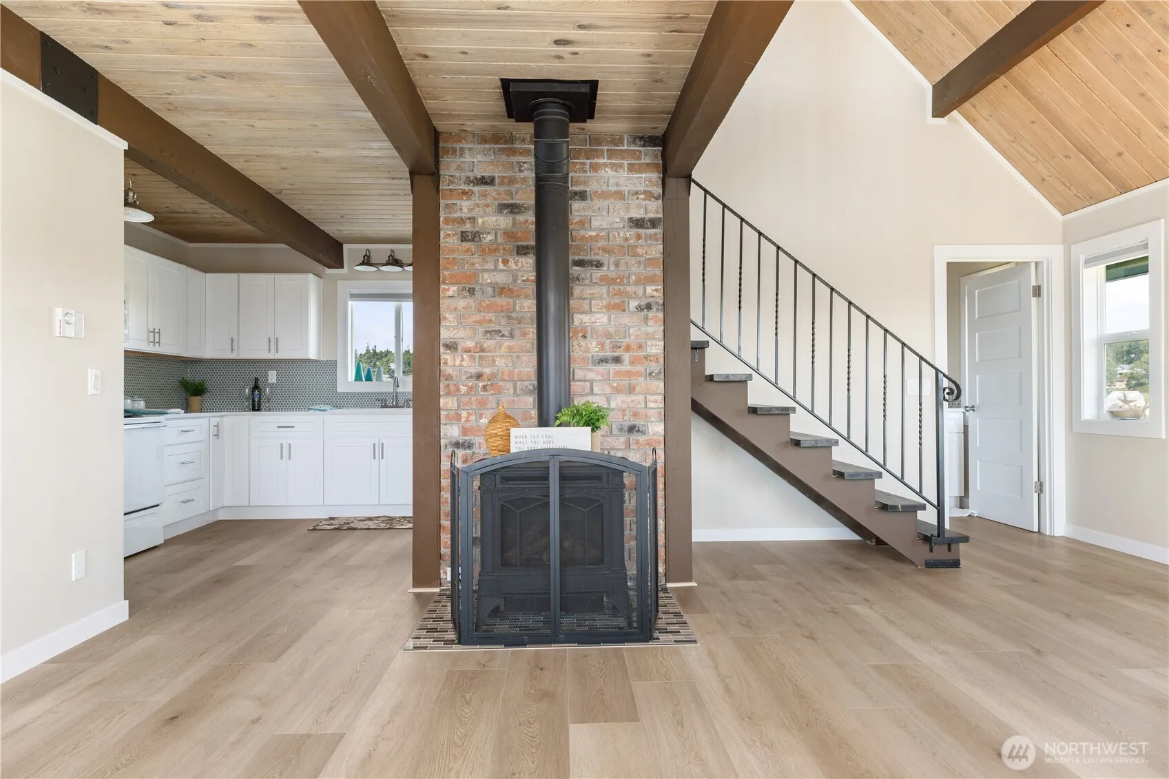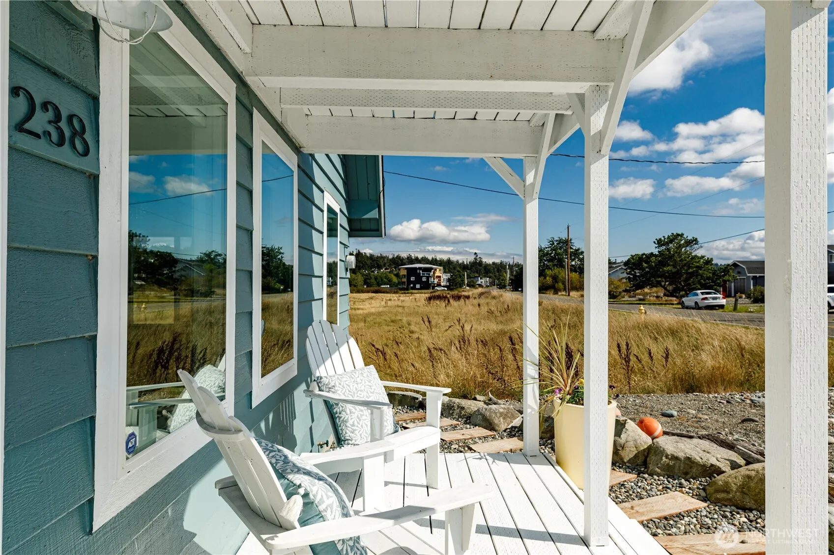 Adorable Northwest Beach Cottage. Completely renovated interior with gas fireplace, lofted bedroom, New Kitchen, designer staircase. Artistically maintained with Views of Ocean / Sound & Olympic Mountains off the Southern facing front with 2 sunset watching decks. Territorial views off the entertaining Northern facing back BBQ deck, surrounded by wildlife and nature in every direction. A short distance to Beach exploring, salmon fishing from the shore, Kayaking and everything you love to do on Whidbey Islands Beaches. Lot 28 next door is included. Small shop for your water toys and a crawl/basement for more storage, newer septic. Previously used as short term rental. This delightful Cottage is bursting with Island happiness.
