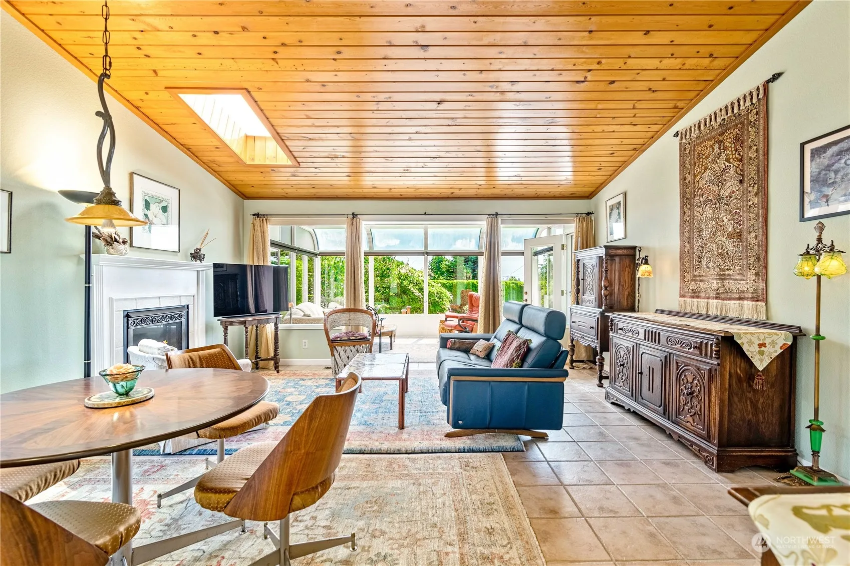 Gardener’s paradise! Beautiful landscaping surrounds this charming 3 bedroom, 1 3/4 bath rambler in desirable Skyline neighborhood. Lots of natural light and great room feel. Open kitchen, dining area and living room with adjoining sunroom. Living room features a gas log fireplace and vaulted ceiling with a skylight. Sunroom opens to a spacious 2 level deck to enjoy the private, fully fenced gorgeous backyard and partial water view. Gas bbq hook-up on small patio. Even a fancy chicken coop! 1 car garage with good storage, workbench and EV plug in. RV parking with waste outlet in front graveled area. Close to Skyline amenities. Something for everyone!